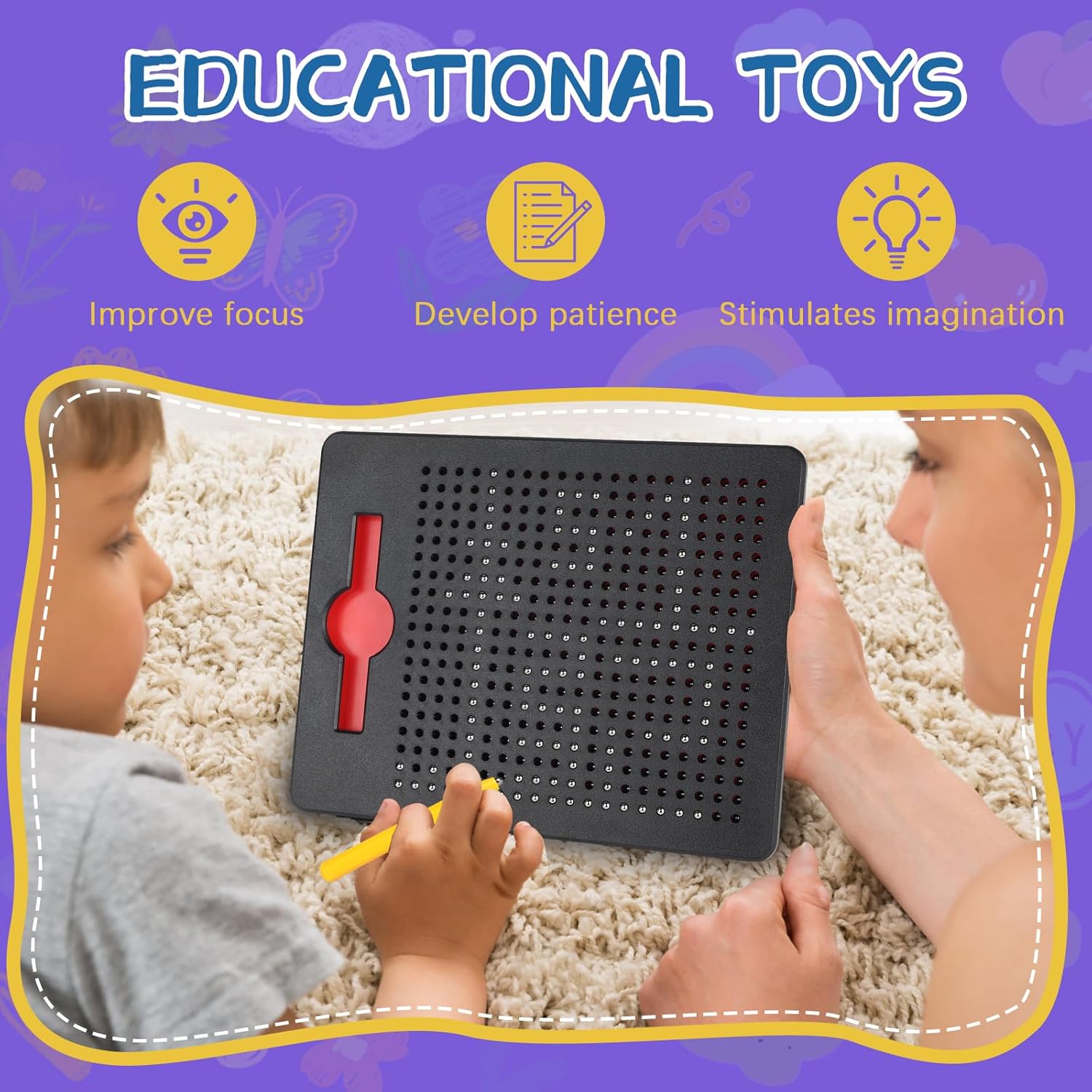 - 🖌️【Fördert wichtige Fähigkeiten】Mit dem Magnetischen Stahlkugel Zeichenbrett können Kinder spielerisch ihre Feinmotorik, Hand-Augen-Koordination und Kreativität entwickeln. Das Magnetspiel Kinder eignet sich hervorragend für Kindergarten-