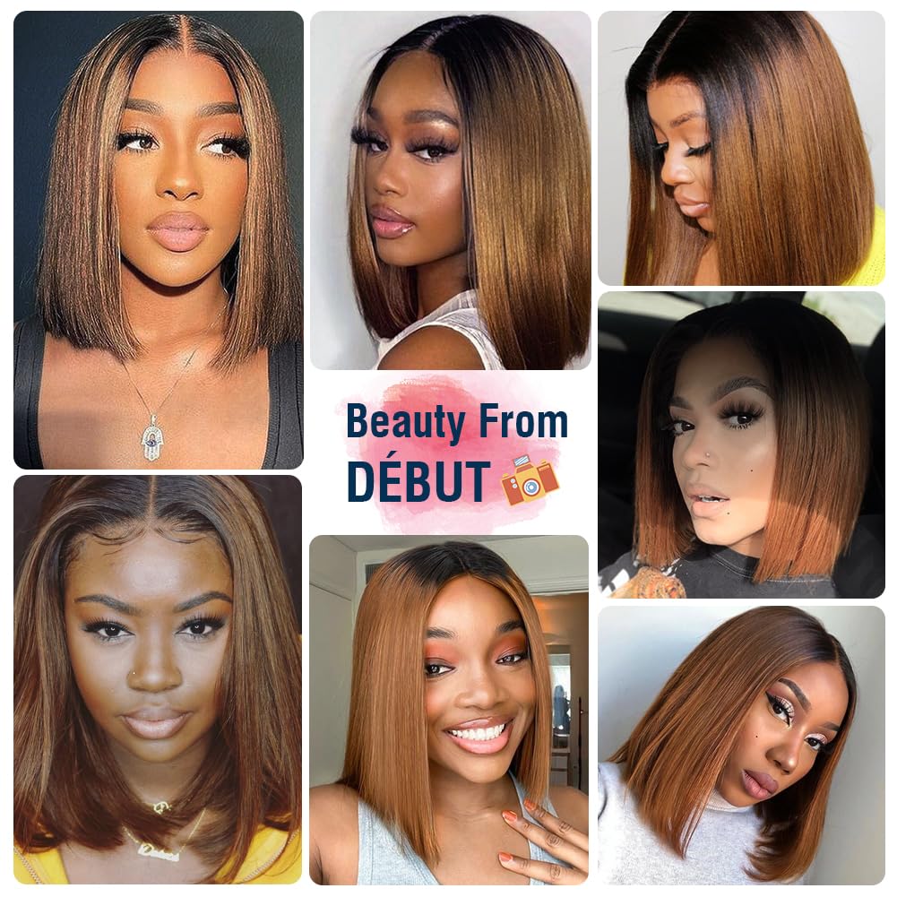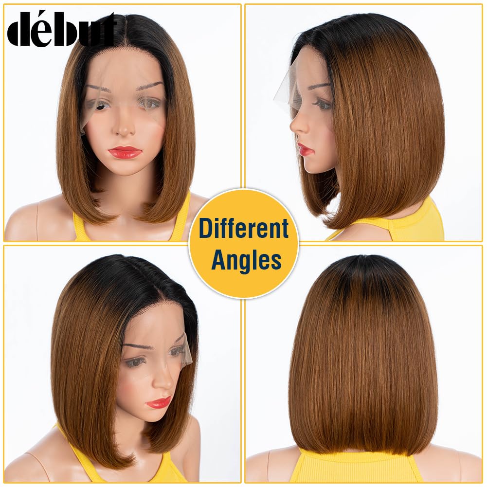 DÉBUT Glatte Bob Perücke, Echthaar, T-Teil, Spitzenfront, Bob-Perücke, vorgezupft, mit Babyhaar, 150