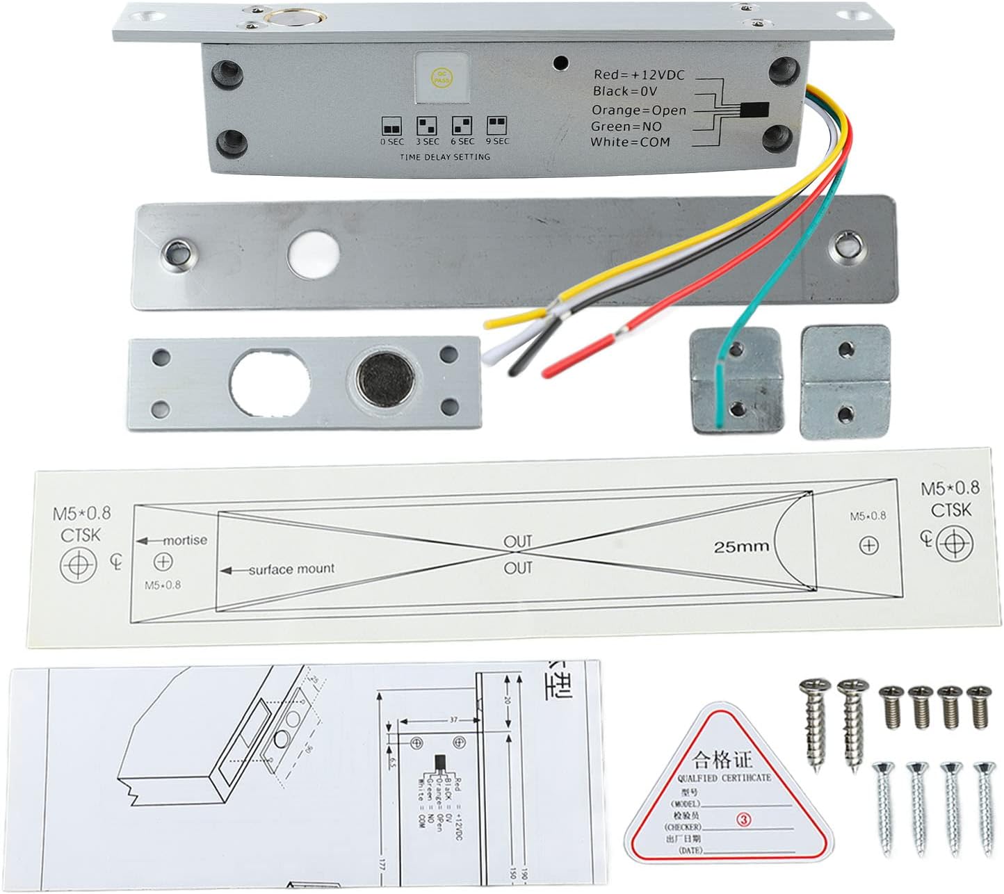 - Praktisches Sicherheitsdesign: Das Elektroschloss unterstützt DC12V-Eingang und 120mA Arbeitsstrom, mit 4 einstellbaren Verzögerungszeiten: 0-3-6-9 Sekunden.