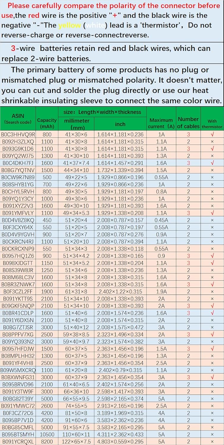- Bitte vergleichen Sie sorgfältig die Polarität des Steckers vor Gebrauch,★Rot "+" schwarz "-",Kabel nicht rückwärts anschliessen.。 ★Bei einigen Produkten hat die Originalbatterie keinen Stecker oder der Stecker stimmt nicht überein oder eine