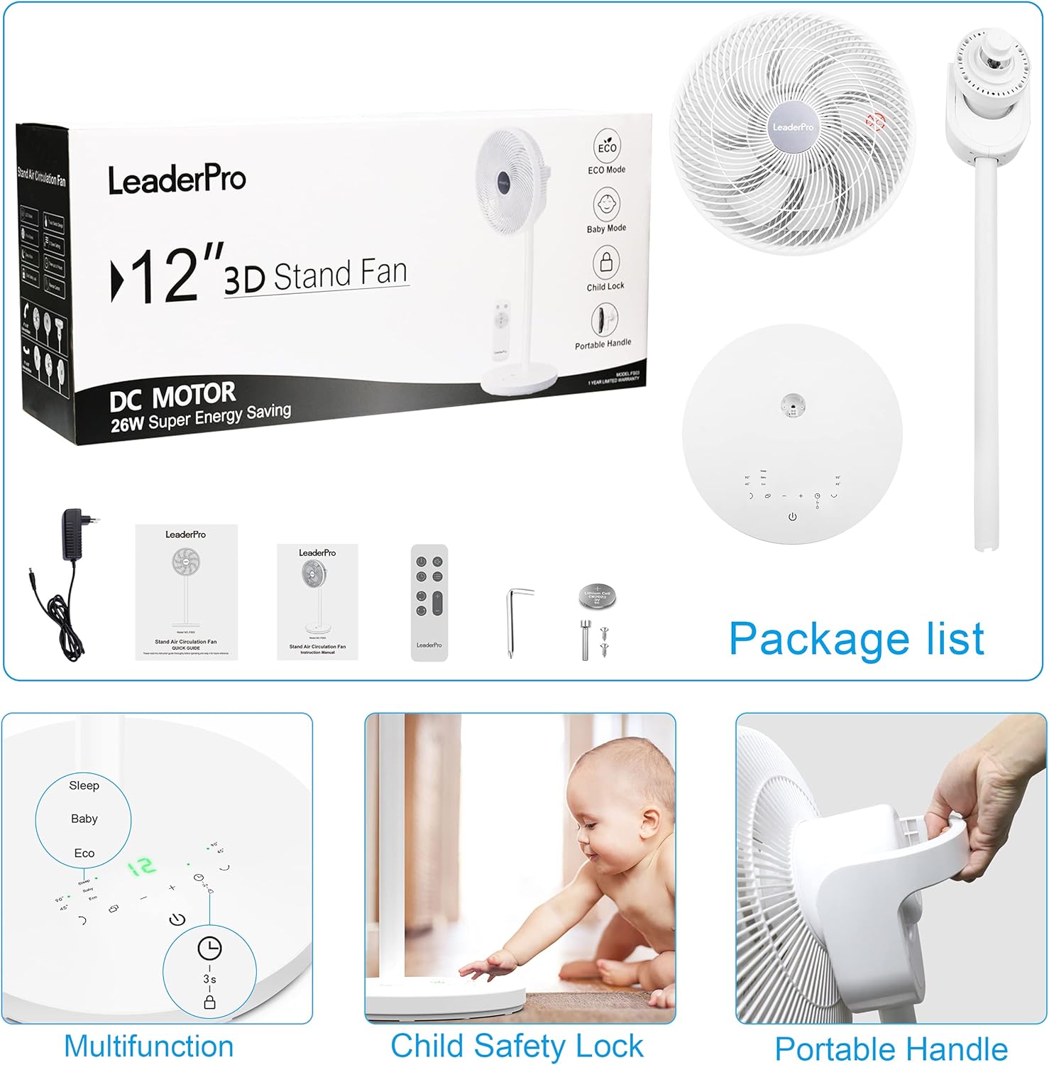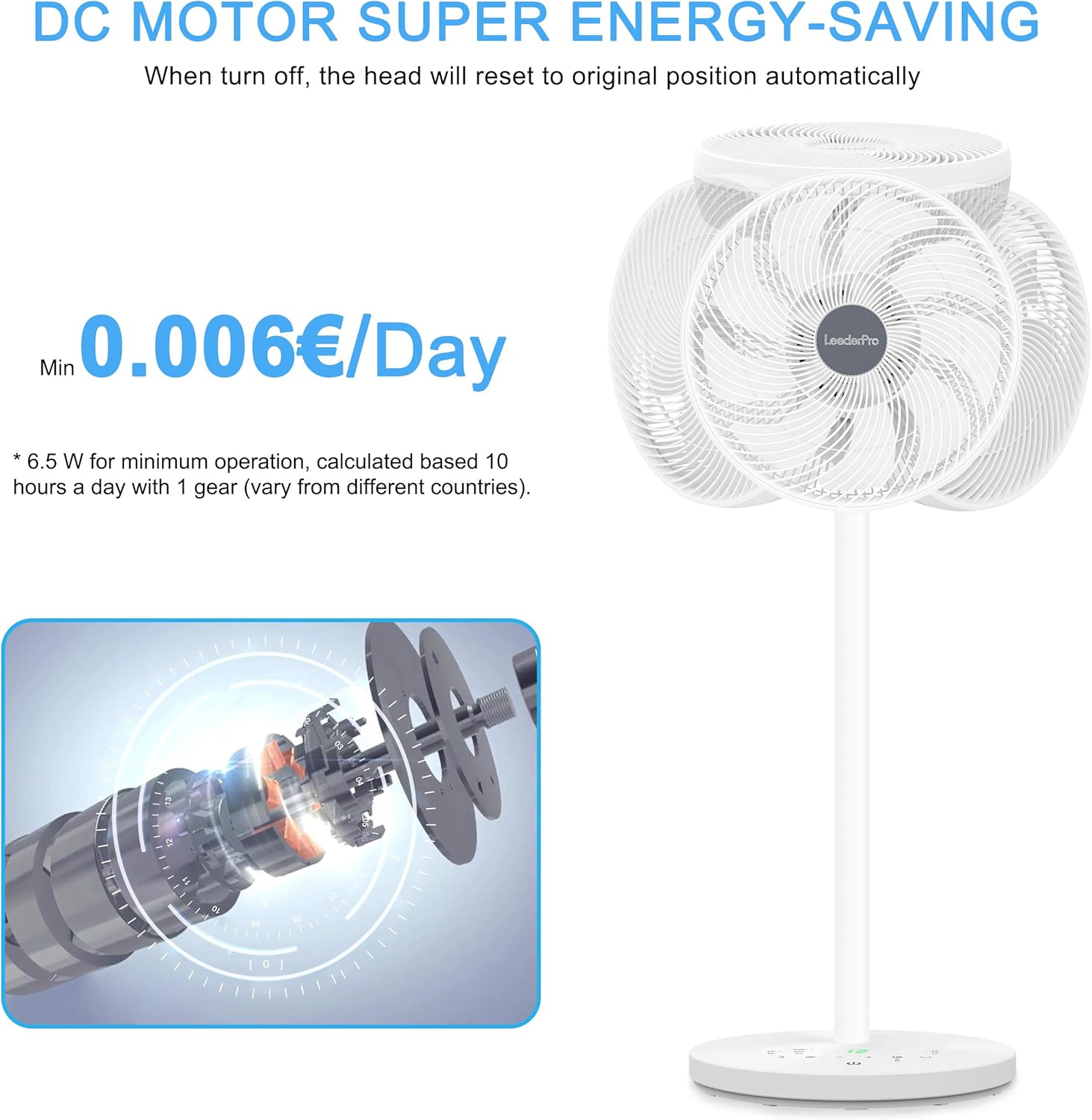 • ◆ NEUE DC MOTOR Standventilator ◆ DC MOTOR ist der grösste Vorteil von Leaderpro Ventilator. Im vergleichen zu normale Fan können den Standventilator mit DC Motor Zumindest 80% Energie sparen(Maximale Leistung ist nur 26W) und leiser sein. Beim