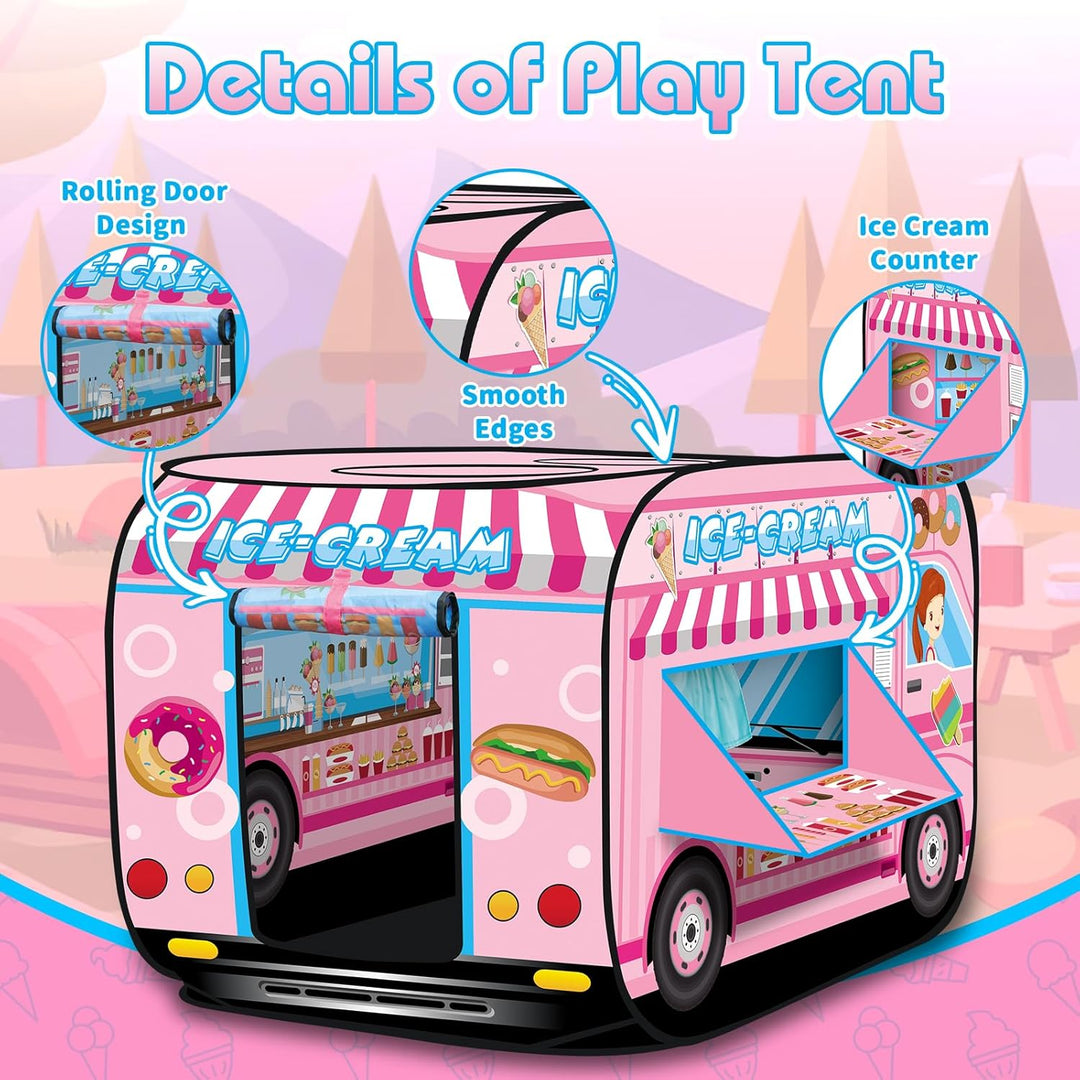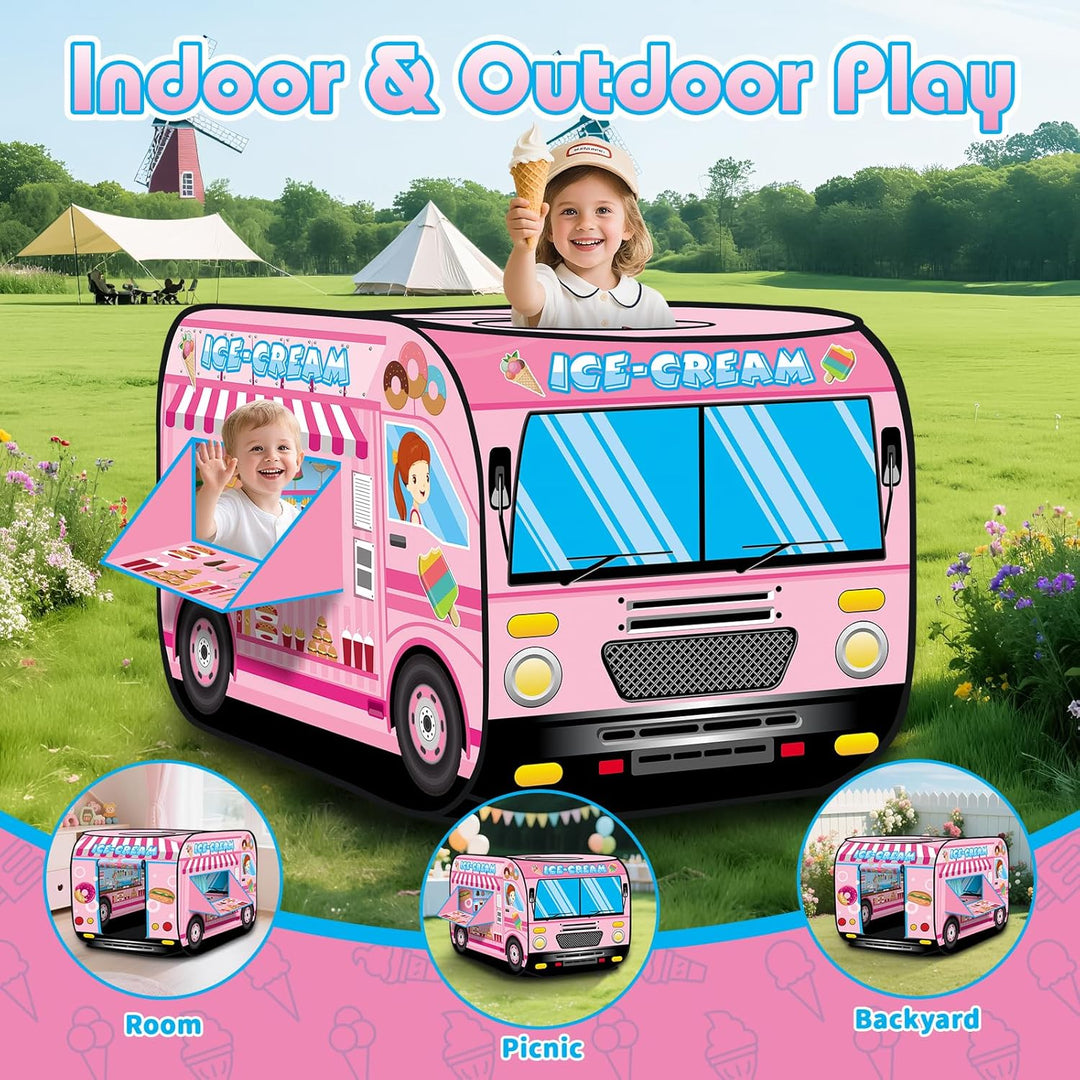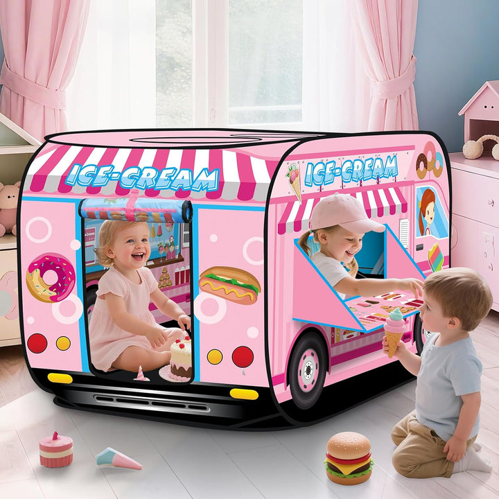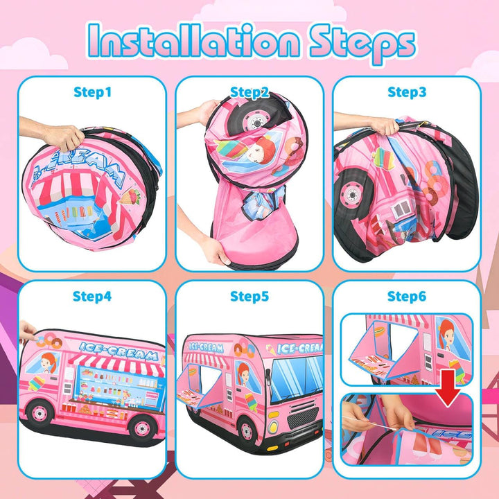 - Faltbares Spielzelt: Suchen Sie nach einem Spielbereich für Ihr Kind? Dieses faltbare Spielhauszelt im Eiswagen-Design ist eine grossartige Möglichkeit, Ihrem Kind einen eigenen Platz zur Verfügung zu stellen! Es kann sogar im Innen- und Aussenbereich