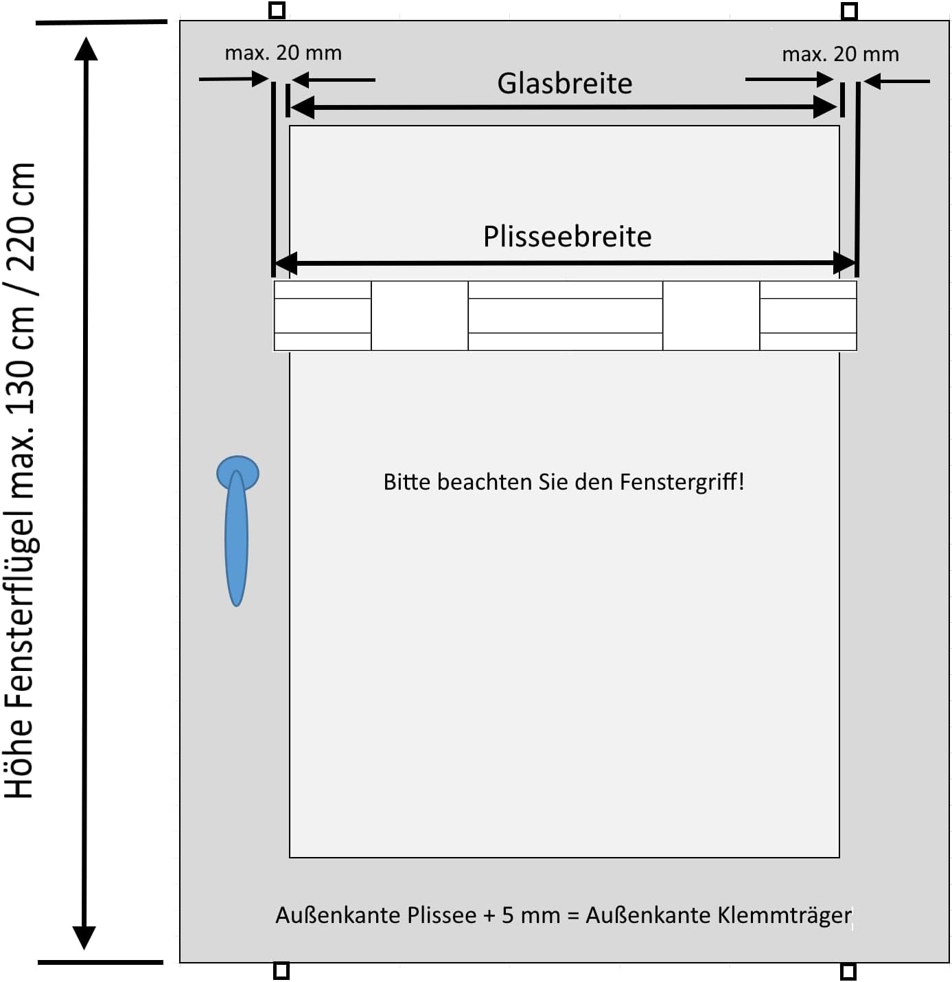 - Die Montage des Plissee Klemmfix erfolgt ohne Bohren durch Klemmträger. Die Plisseehalter sind stufenlos verstellbar bis 22 mm Falzstärke. Die Stofftiefe des Plissee Klemmfix ohne Bohren beträgt 20 mm.