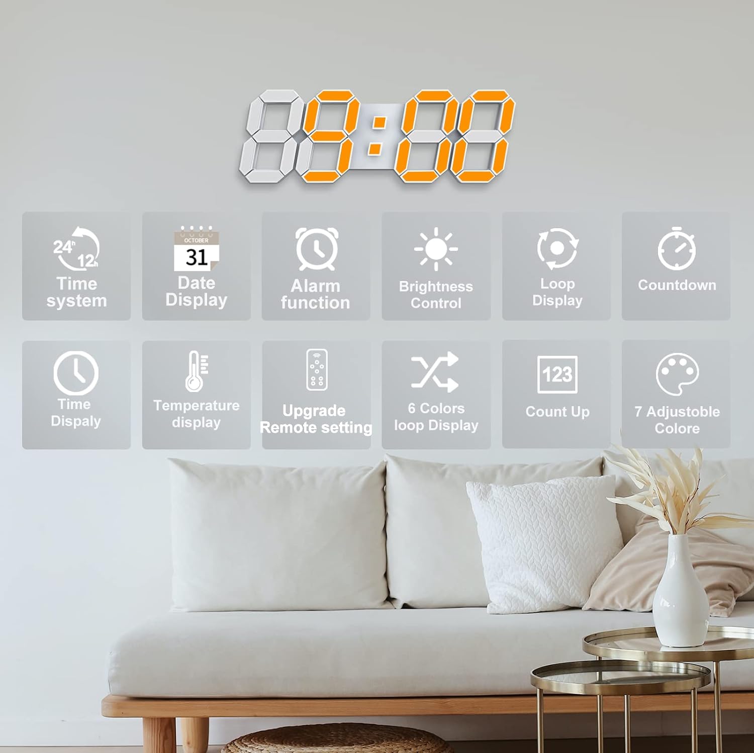 - Multifunktionaler LED digitaler Wanduhr - 12/24 Stundenanzeige, Datum, Temperaturanzeige, Fahrenheit/Celsius einstellbar, mit Weckfunktion/Zeitspeicher/Snooze/Nachtlichtfunktion/Stoppuhr/Countdown, manueller Helligkeitseinstellung, automatischer