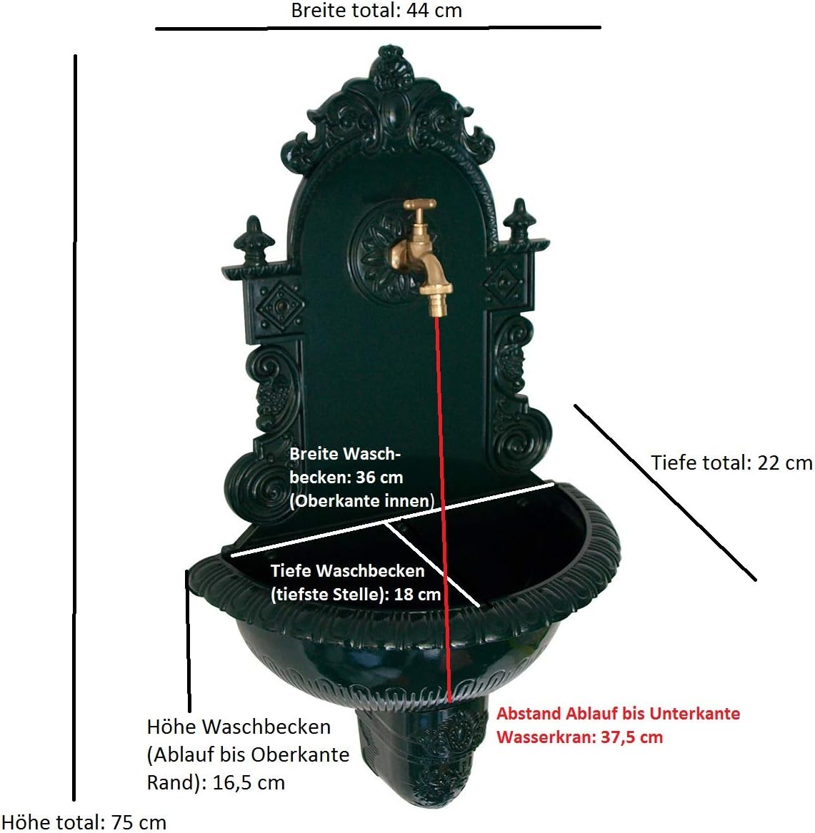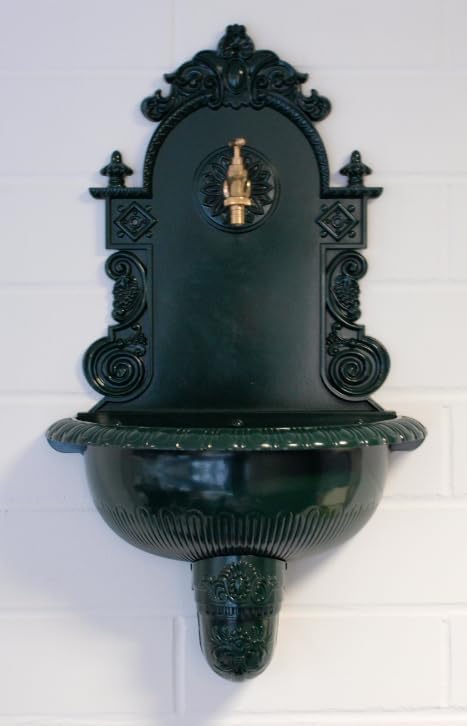 - Voll funktionsfähiger Wandbrunnen / Waschbecken im Nostalgie-Look, Farbe dunkelgrün
