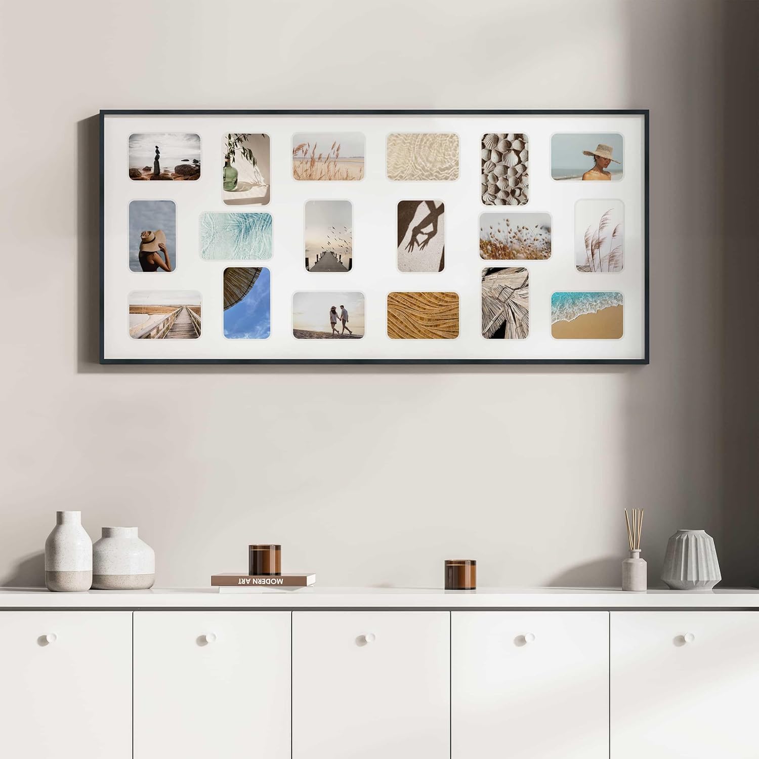 - Das weisse Passepartout (Stärke 2,0 mm) hat Museumsqualität und ist säurefrei. Die 18 Ausschnitte für Bilder im Format 10x15 cm (Öffnung ist ca. 9x14 cm).