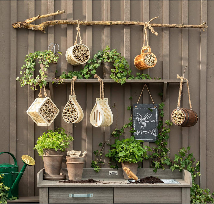 - Zylinderförmiges Insektenhotel aus Kiefernholz