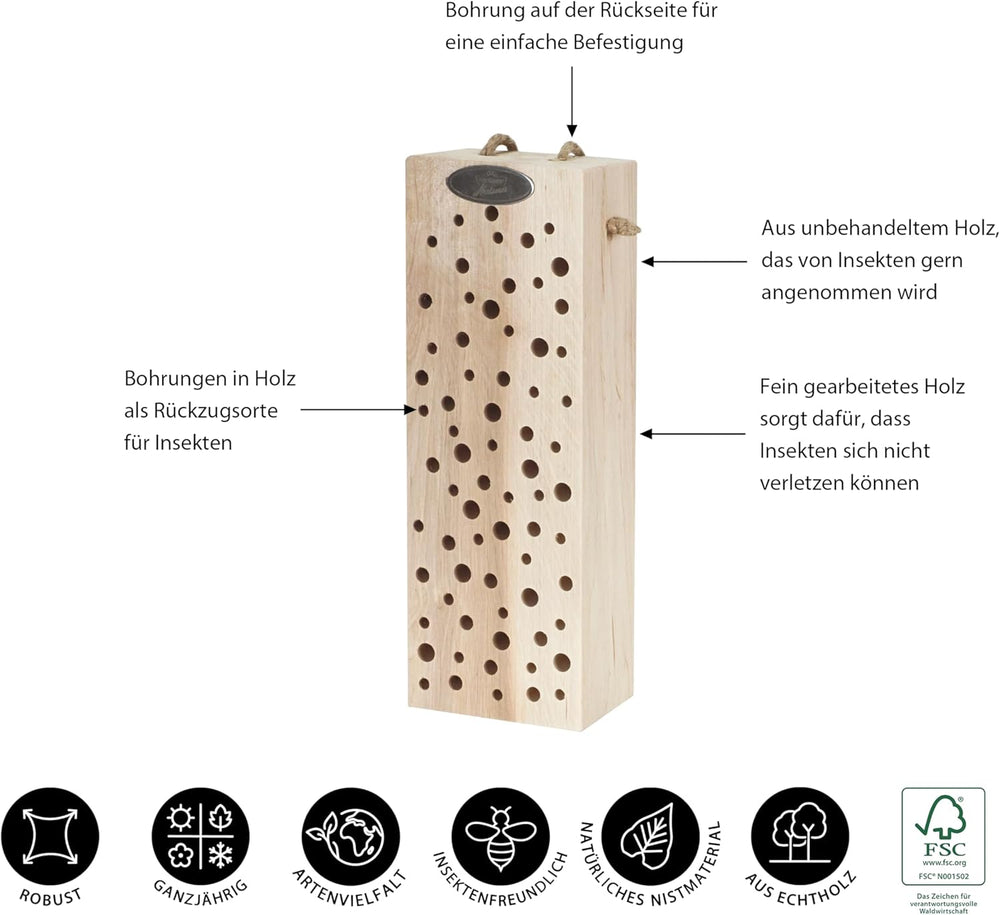 - Bietet eine warme & windgeschützte Brutstätte für Bienen & Hummeln