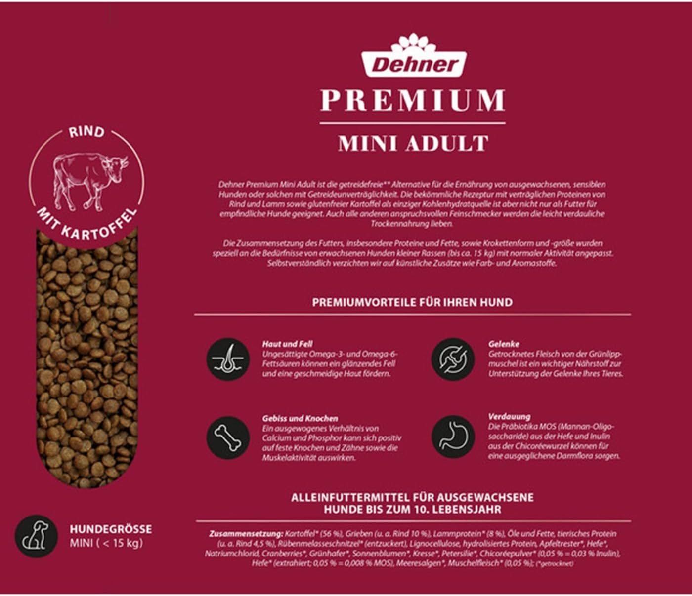 - speziell für ausgewachsene Hunde kleiner Rassen bis 15 kg