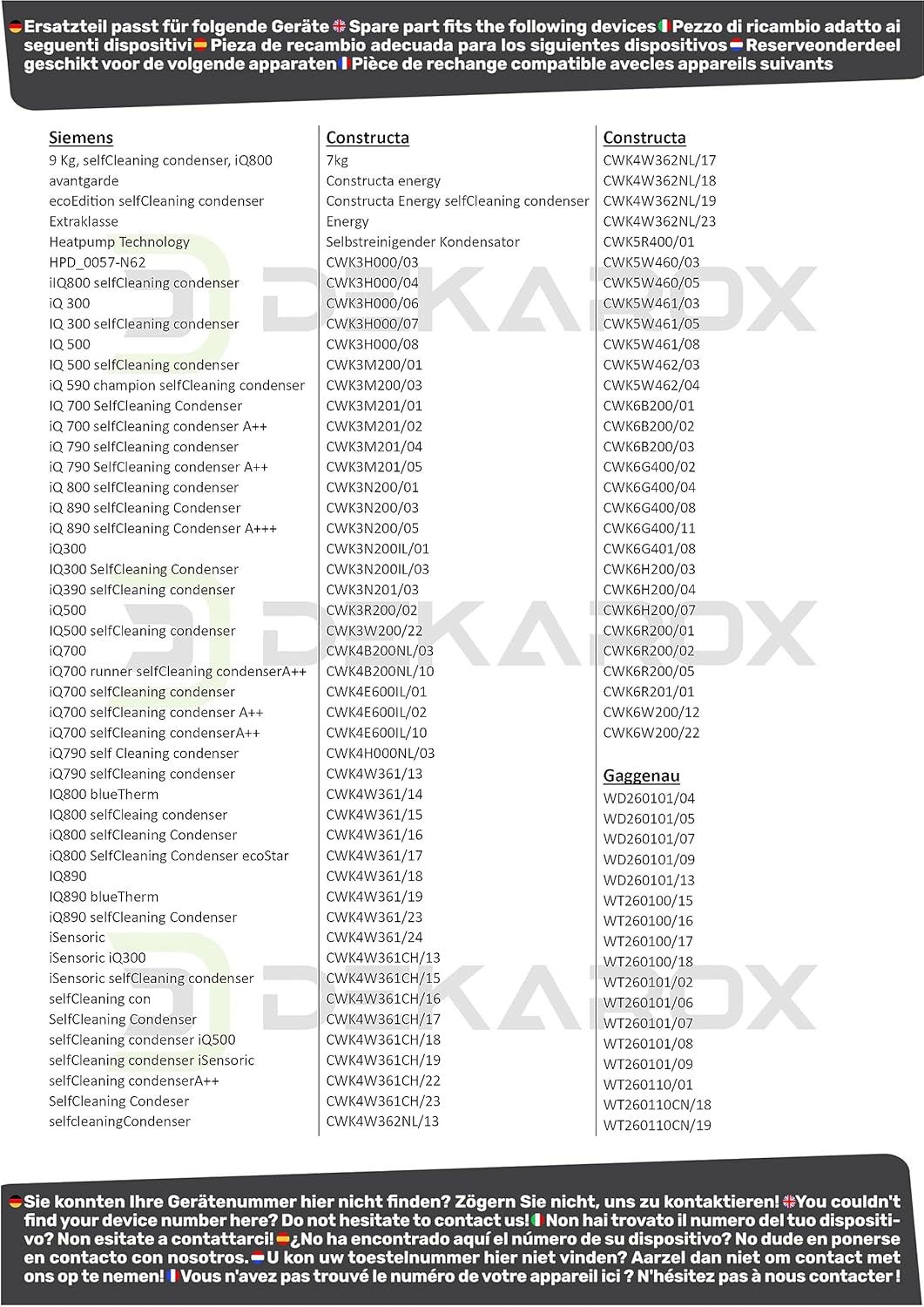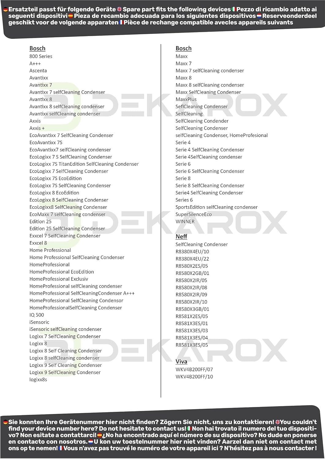 - Passt für Bosch Siemens Trockner wie Avantixx / EcoLogixx / Exxcel / HomeProfessional / iSensoric / Logixx / Maxx / SelfCleaning Condenser / Serie 4 / Serie 6 / Serie 8 / Extraklasse / iQ300 / iQ500 / iQ590 / iQ700 / iQ800 / iQ890 / usw.