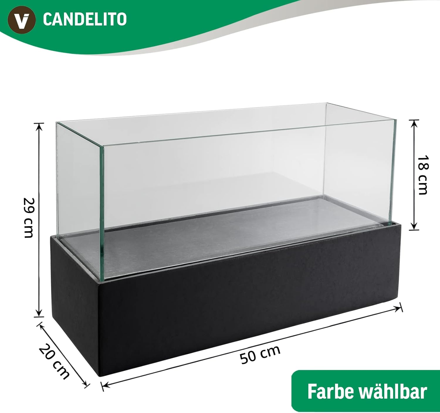 - Grösse (Höhe x Breite x Tiefe): 29x50x20 cm - Masse Glasaufsatz: 18x47x17 cm - Höhe Unterkonstruktion: 12 cm