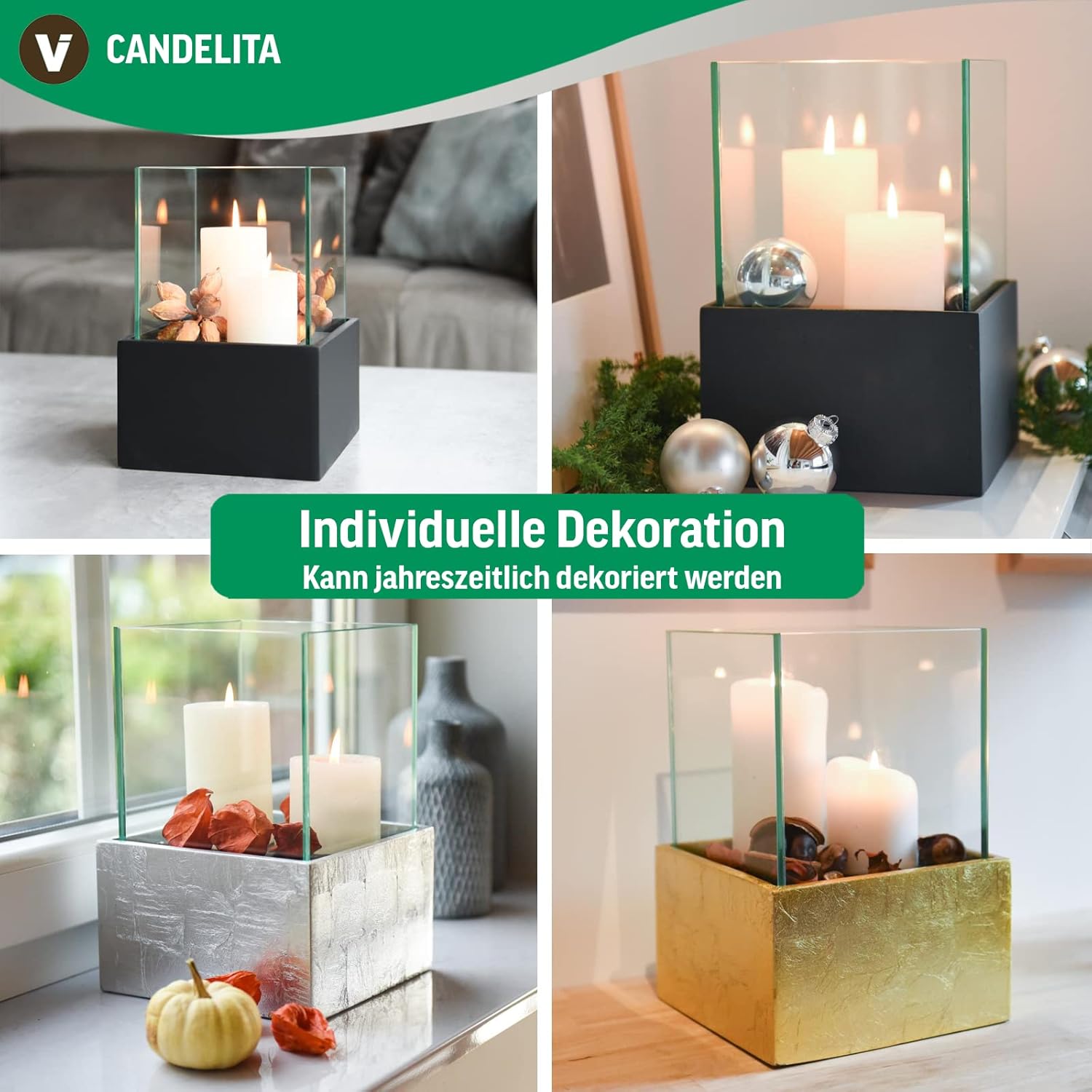 • GEMÜTLICHKEIT PUR: Das eckige Windlicht CANDELITA sorgt für eine echte Wohlfühlatmosphäre bei Kerzenschein. Es kann auch mit jahreszeitlicher Deko bestückt werden - individueller Look