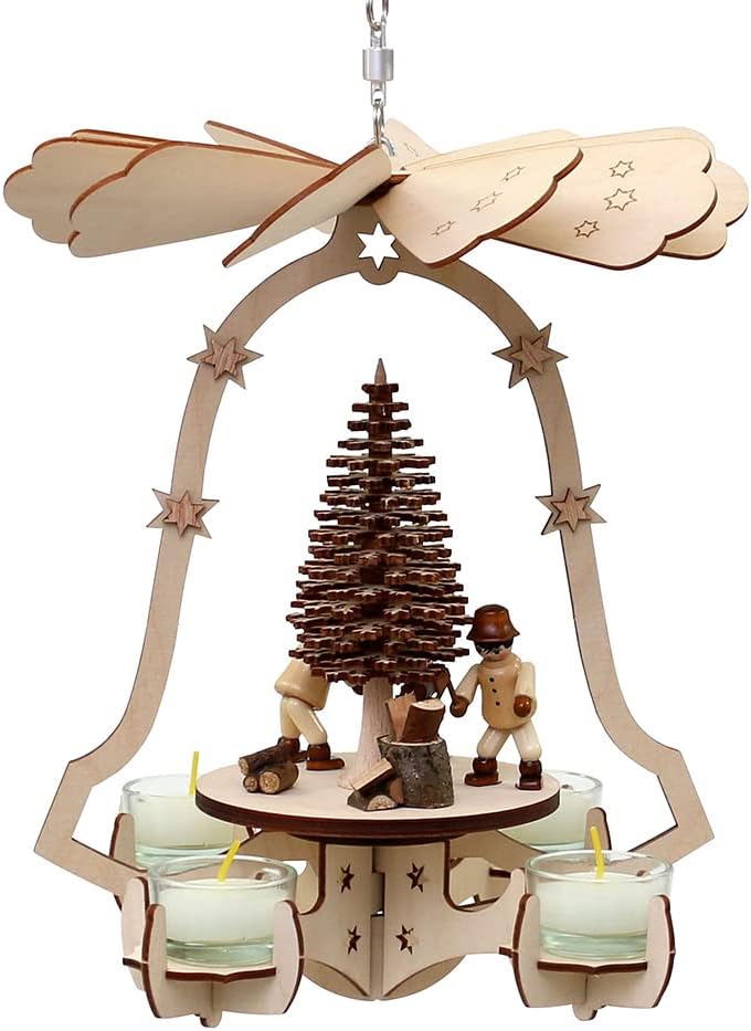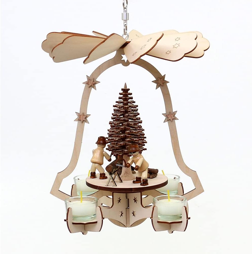 Dekohelden24 Hochwertige Holz Deckenpyramide, Hängepyramide-Waldarbeiter, inkl. Drehlager, ca. 28 cm