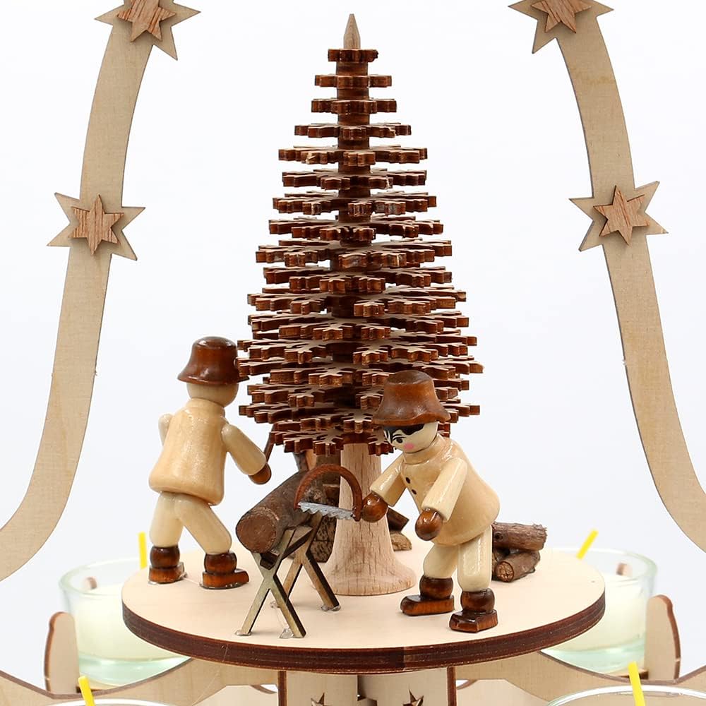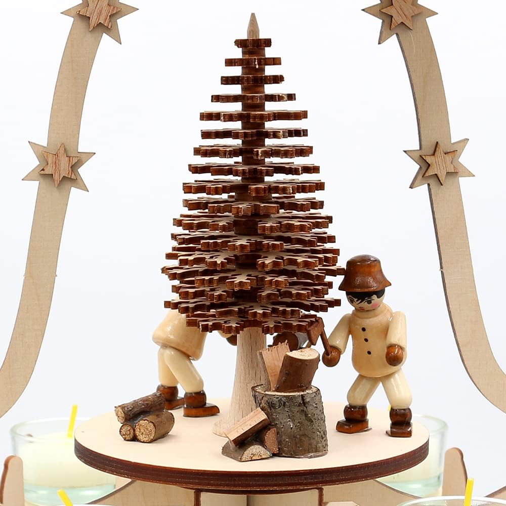 • Motiv: Waldarbeiter Masse L/B/H: 19 x 19 x 28 cm. Mit vielen kleinen liebevollen Details verziert. Das Drehlager wird mit der Pyramide mitgeliefert.