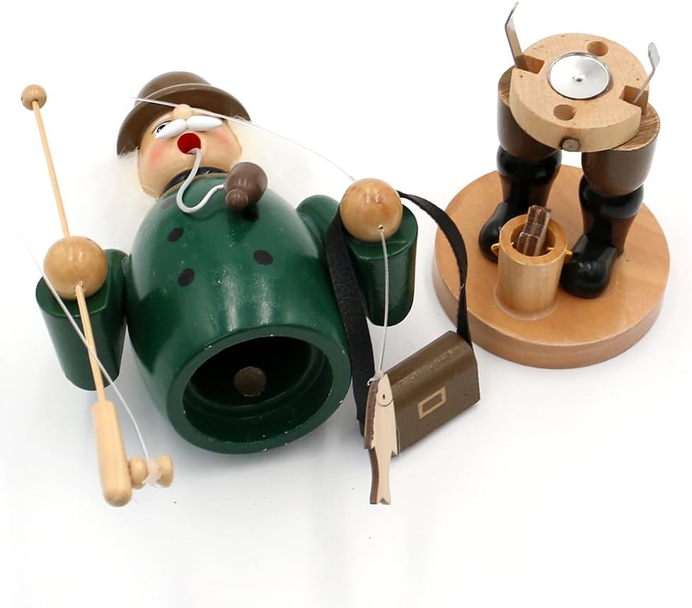 - Der Angler Räuchermann kommt mit einer Angelrute, einem Fisch und einem Eimer, die seine Leidenschaft für das Angeln zum Ausdruck bringen. Sie können Räucherkerzen in den Räuchermann einsetzen, um eine sanfte Duftnote in Ihr Zuhause zu bringen und