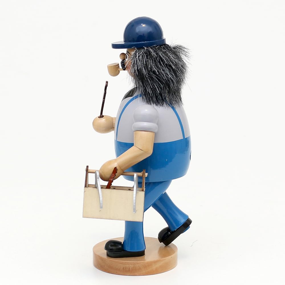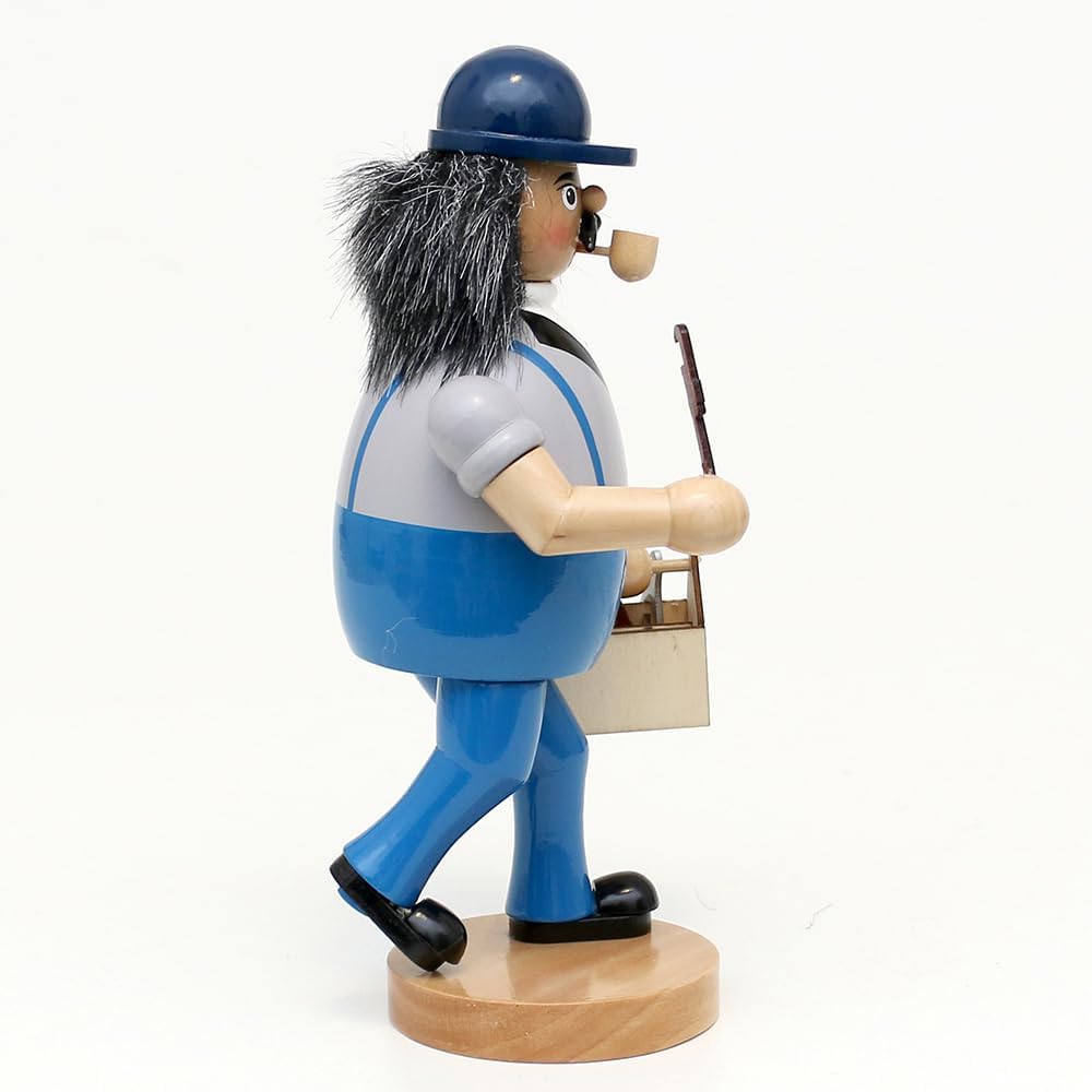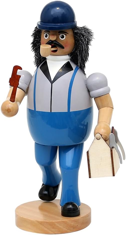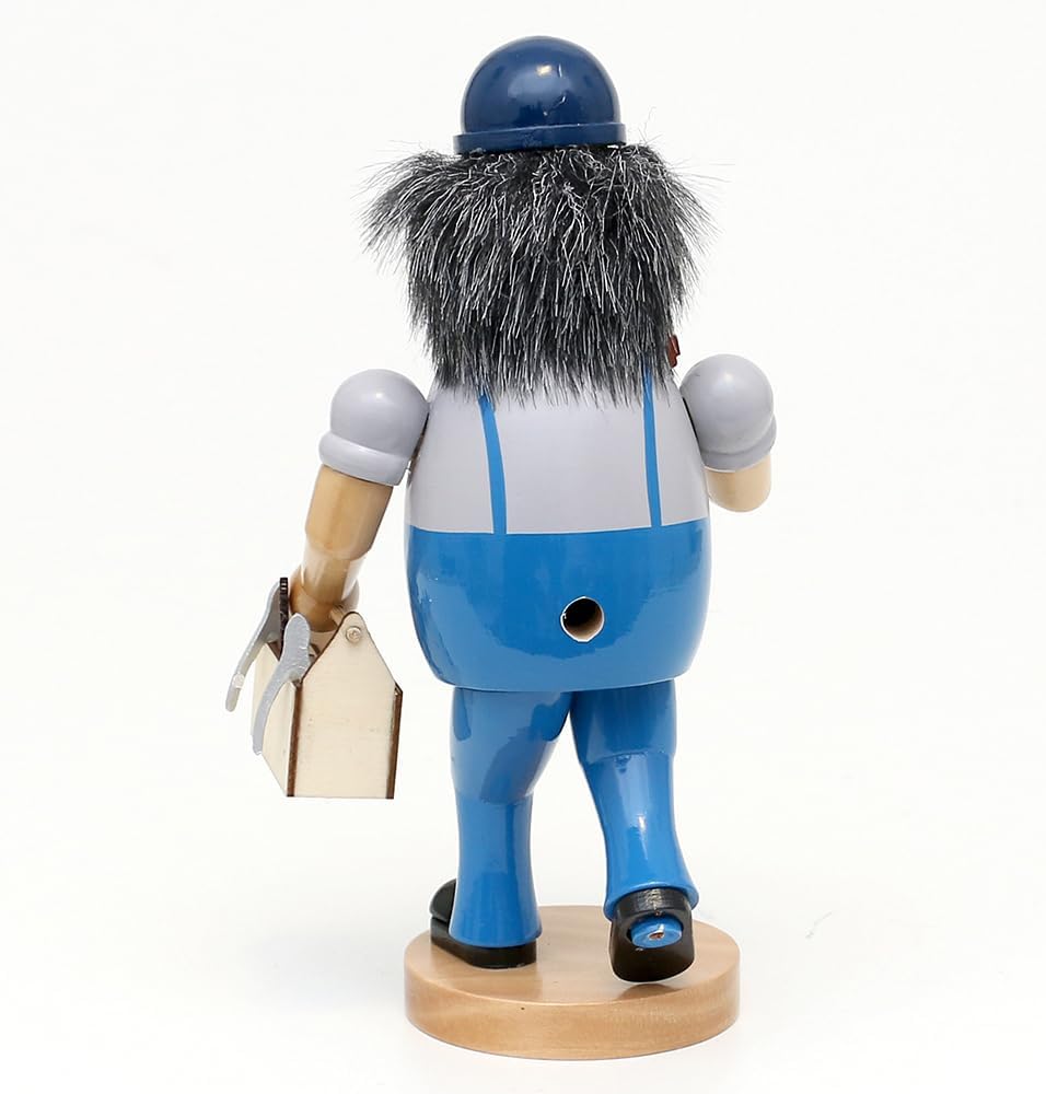• Die Werkzeugkiste und die Rohrzange, die der Räuchermann trägt, verleihen der Figur eine zusätzliche Schicht Authentizität. Diese Details vermitteln den Eindruck, dass der Räuchermann gerade dabei ist, Reparaturen und Installationen vorzunehmen.