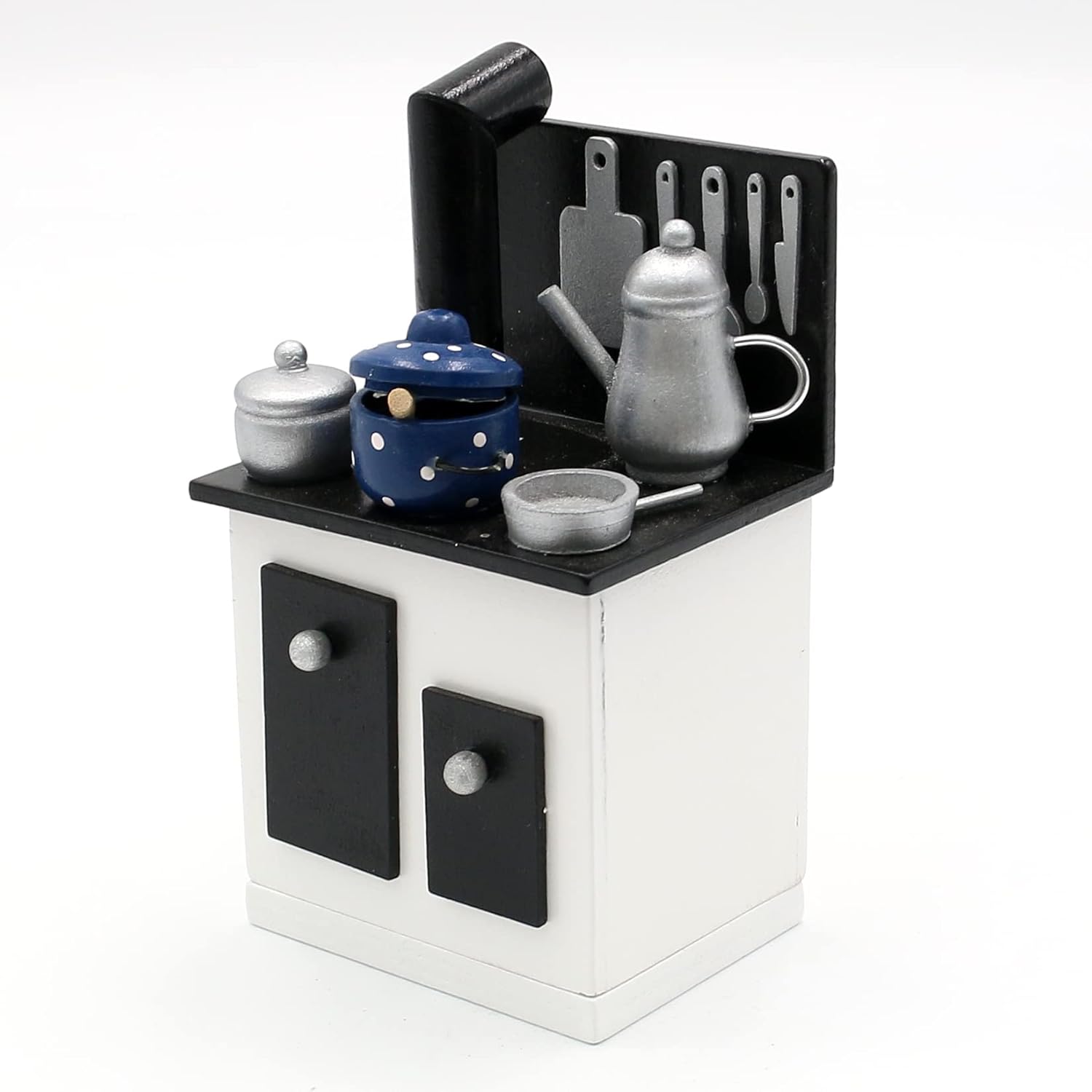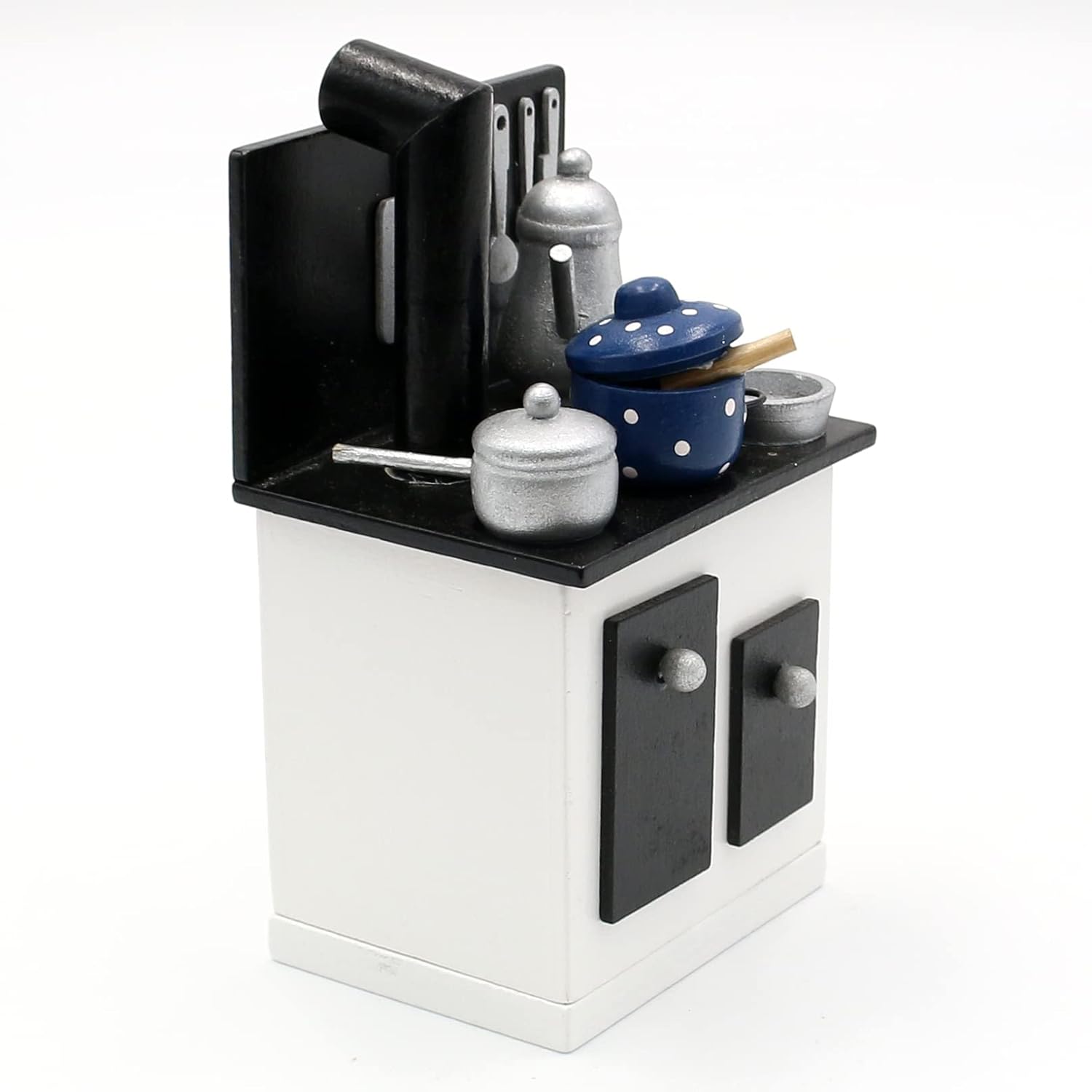- Holz Räucherofen mit Küchenutensilien, in schwarz - weiss