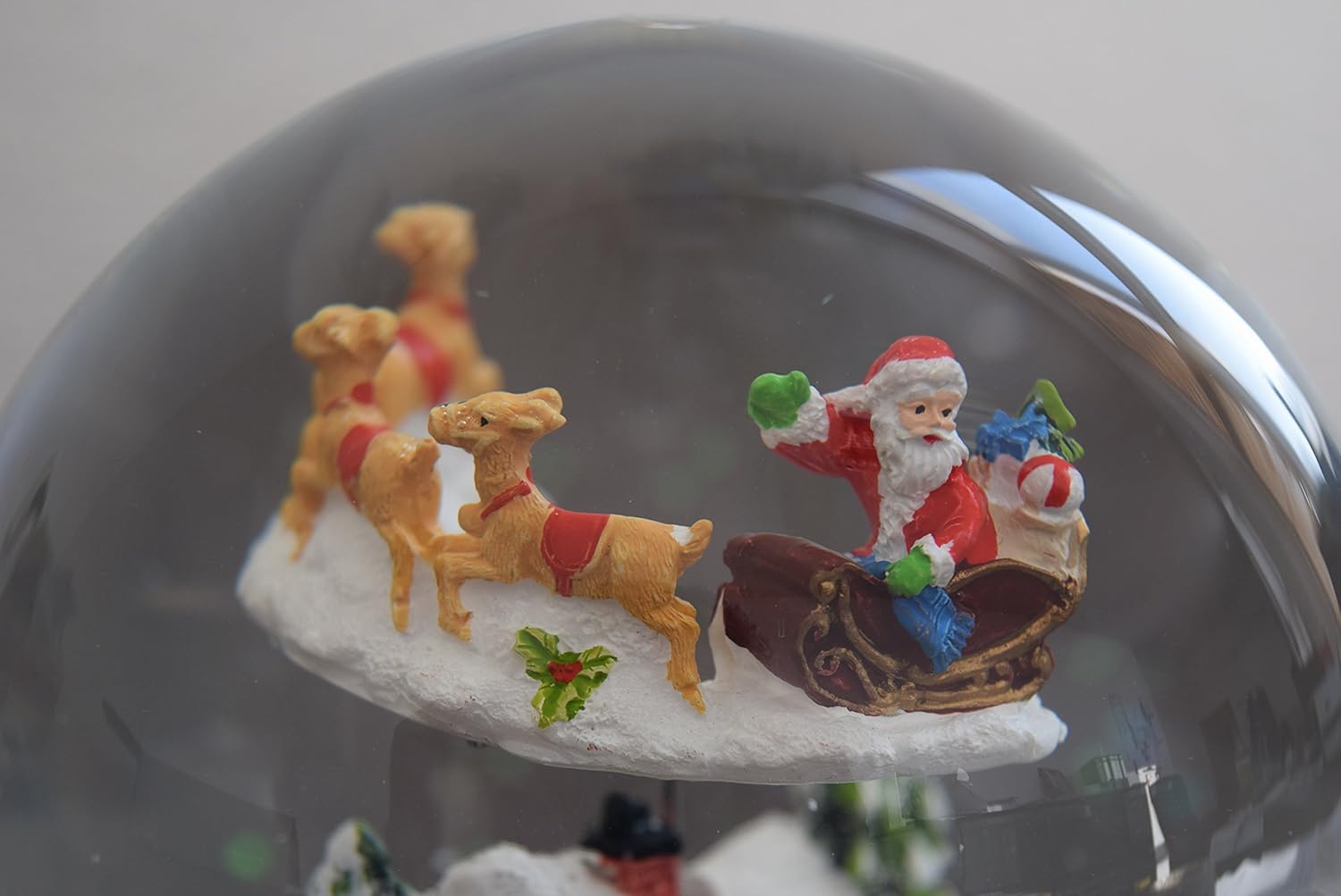 - Verzaubernde XXL Schneekugel mit Winterlandschaft mit rotierendem Rentierschlitten, Schneewirbel und Sound