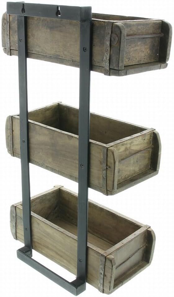Dekoleidenschaft Wandregal Kolonial aus recyceltem Holz im Used Look, Regal mit 3 Holzkisten, Hänger