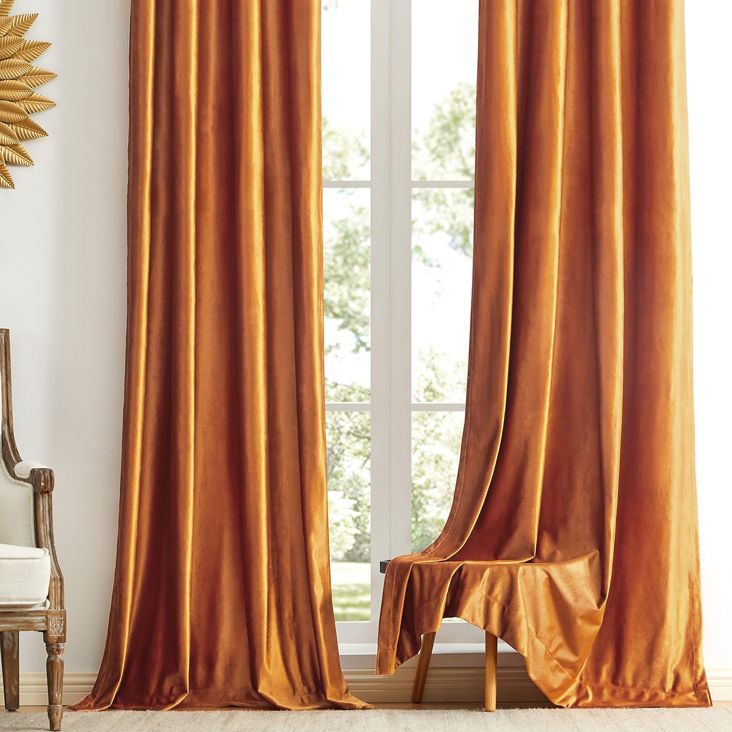 - MATERIAL: Hochwertiger weicher Samtstoff, hautfreundliche Berührung und einzigartige Farbe. machen die Fenster drapieren mehr klassisch und luxuriös und kann besser den Raum dekorieren. seine Schattierung und Lärmminderungseffekte sind auch sehr gut.