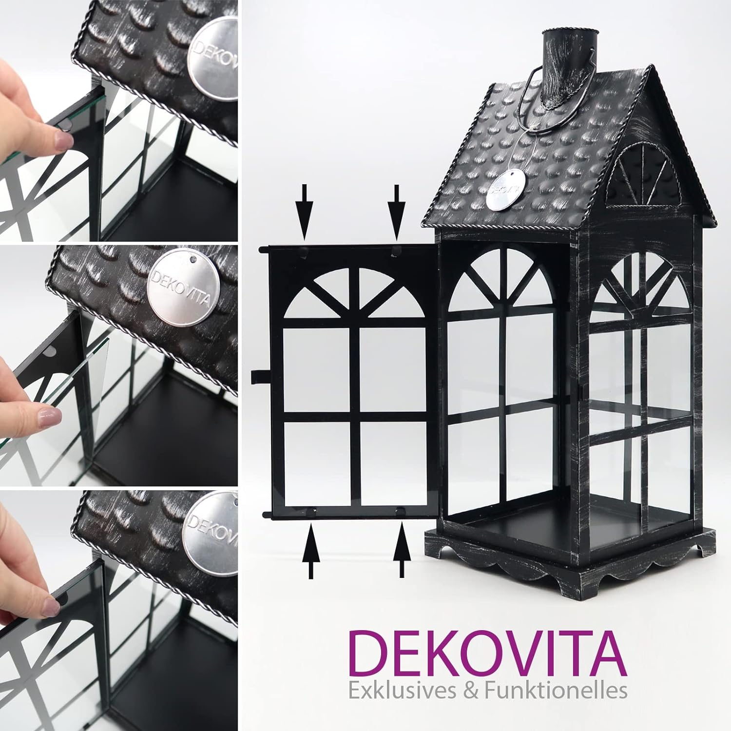 • TÜR MIT VERSCHLUSS: Die Laterne lässt sich öffnen, dekorieren und wieder abschliessen. Die Tür mit Glasfenster sieht schön aus und schützt Ihre Haustiere vor brennende Kerzen.