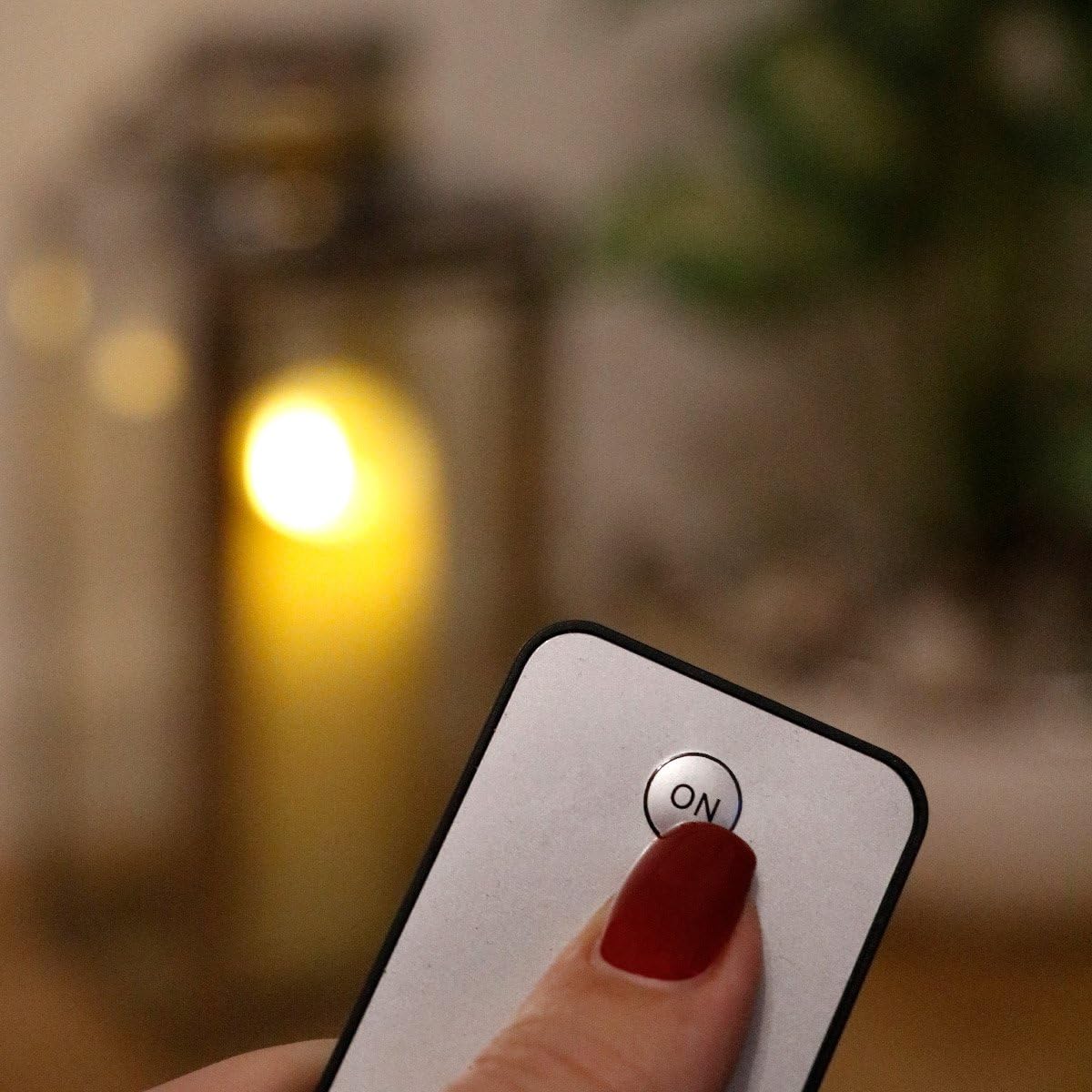 - TIMER & FERNBEDIENUNG - Beides inklusive! Fernbedienung mit 10m REICHWEITE schaltet die LED Stumpen-Kerze AN, AUS oder setzt die flammenlosen Kerzen in TIMER-MODUS: 5h Betrieb / 19h Standby