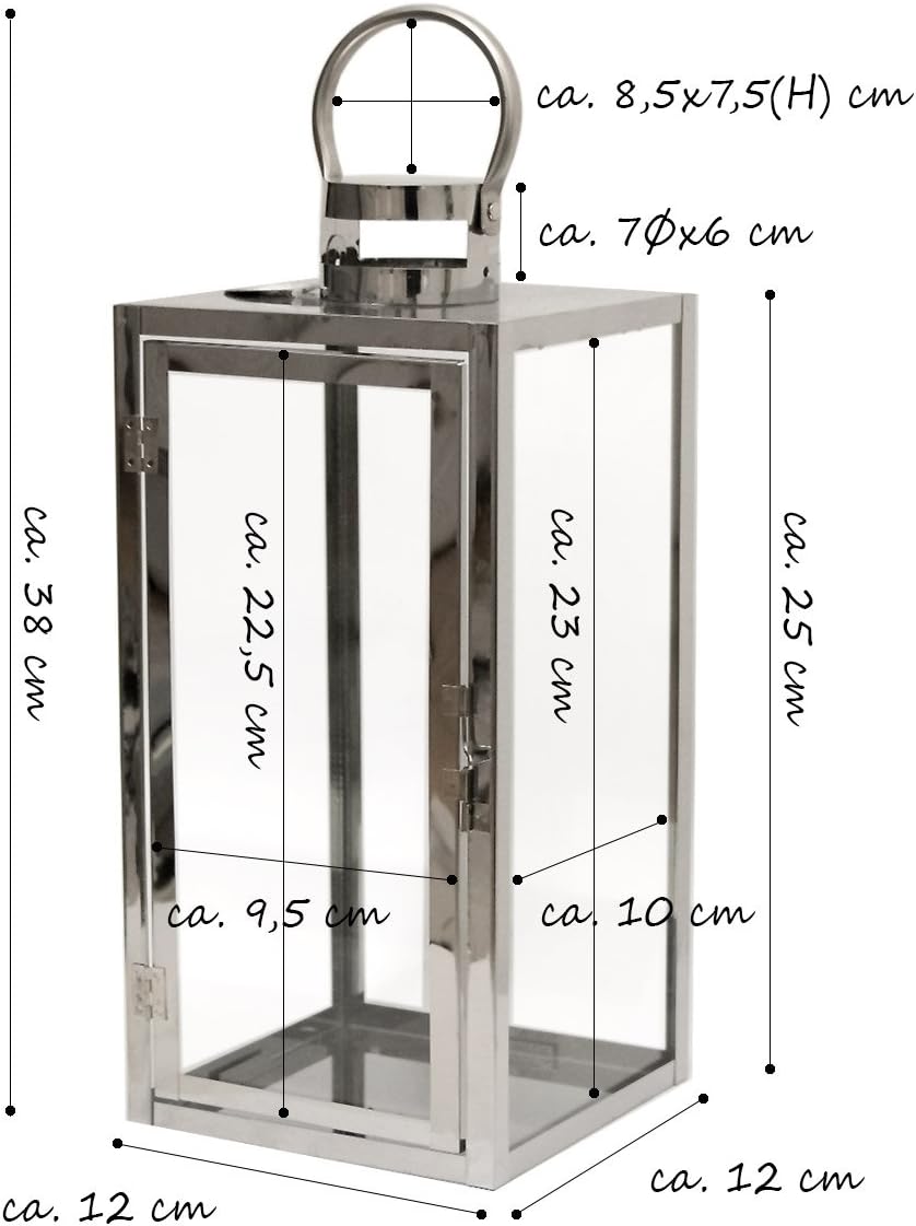 • HANDGEFERTIGT MIT ECHTGLAS-SCHEIBEN: Die Laterne aus Edelstahl 12x12x30cm ist ein handgefertigtes Unikat. Die Scheiben sind aus echtem Glas, die man zum Gravieren herausnehmen und wieder einsetzen kann.
