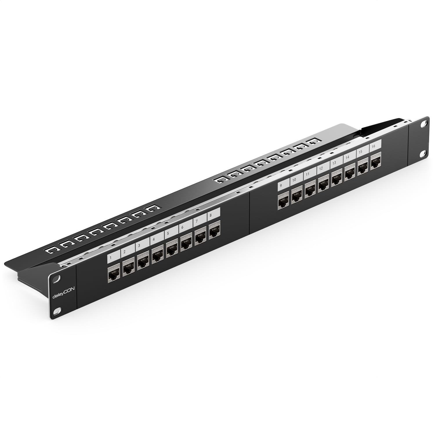 - deleyCON Patchpanel Verteilerfeld // 16-Port // Für den privaten und professionellen IT Bereich konzipiert