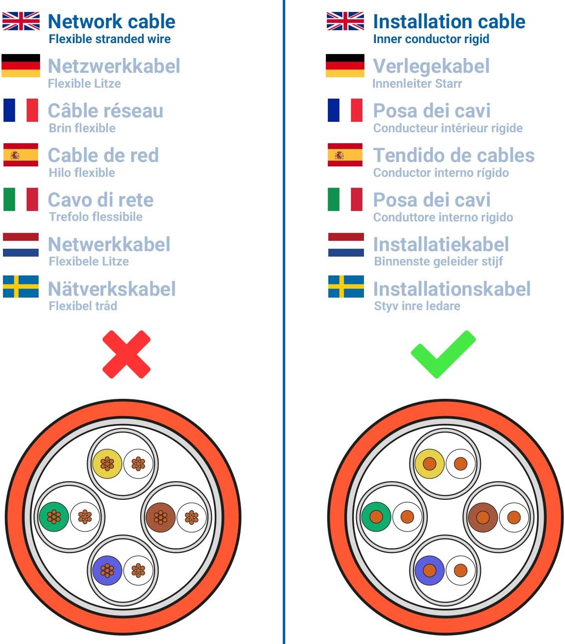 - Kupfer Verlegekabel starr für LSA Anschlüsse: Netzwerkdosen, Patchpanel, Keystone Module etc.