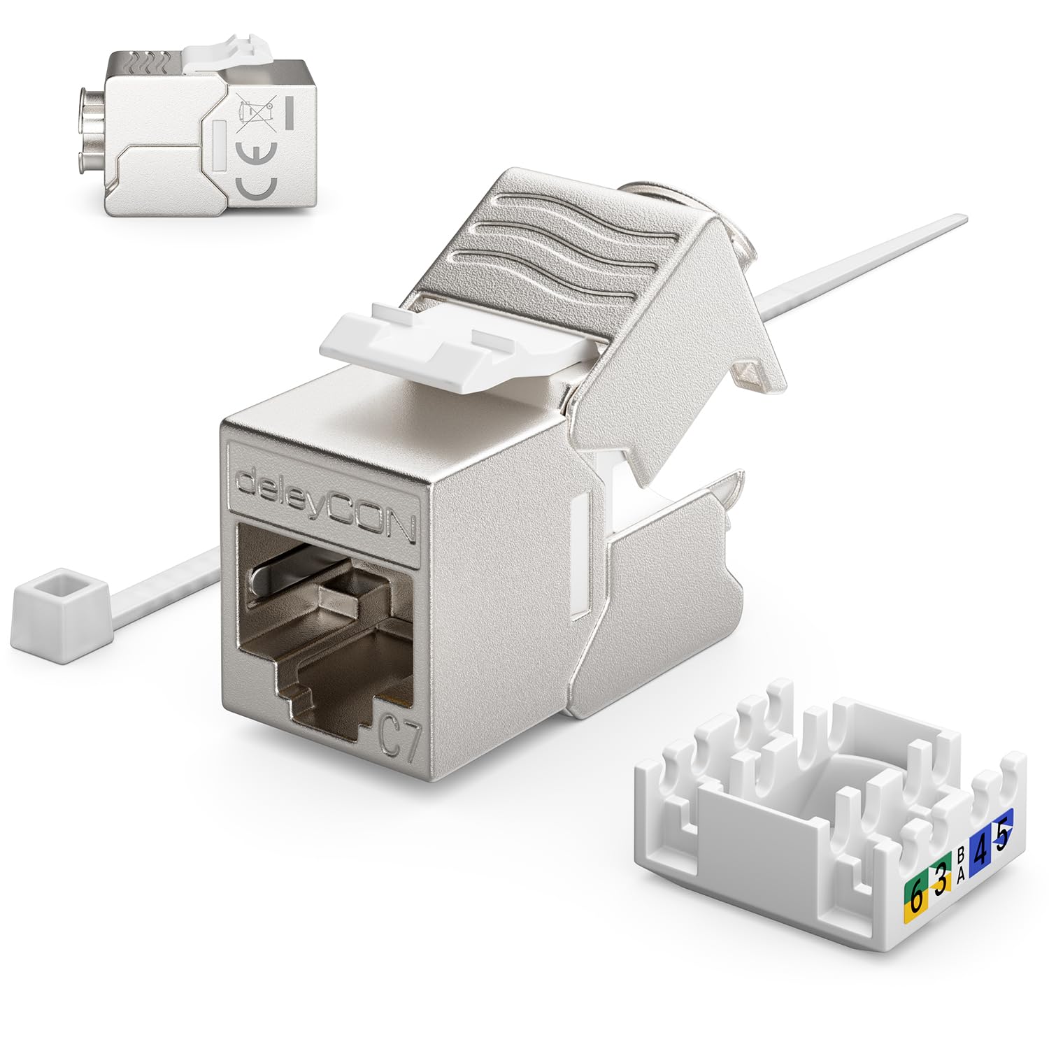 - Voll geschirmte CAT 7 Keystone Jack Module // Metall Gehäuse // werkzeugfreie Kabelmontage dank Snap-In Technologie // Farbcodiert nach EIA/TIA568A & B