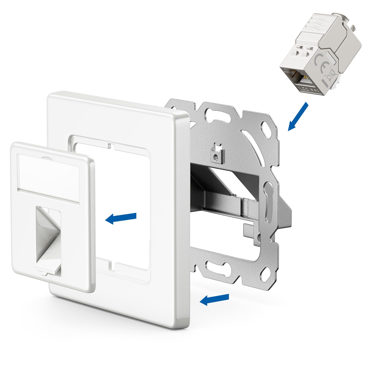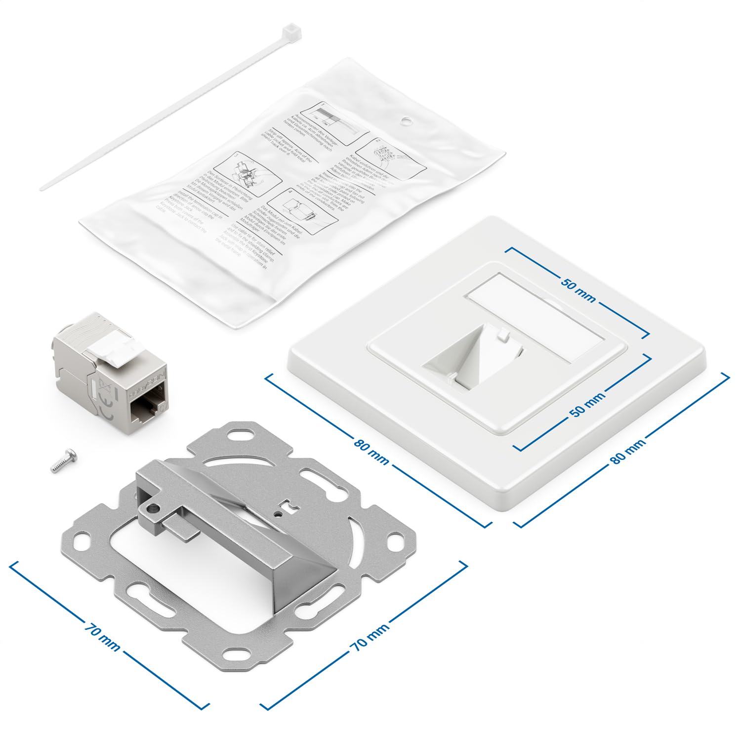 - Montage: Unterputz Montage // Sichtfenster und Beschriftungseinlage // Schutzkappen an den RJ45 Buchsen // Keystone kompatibel zu allen gängigen RJ45 Patchkabeln // Einfache Montage an der Wand