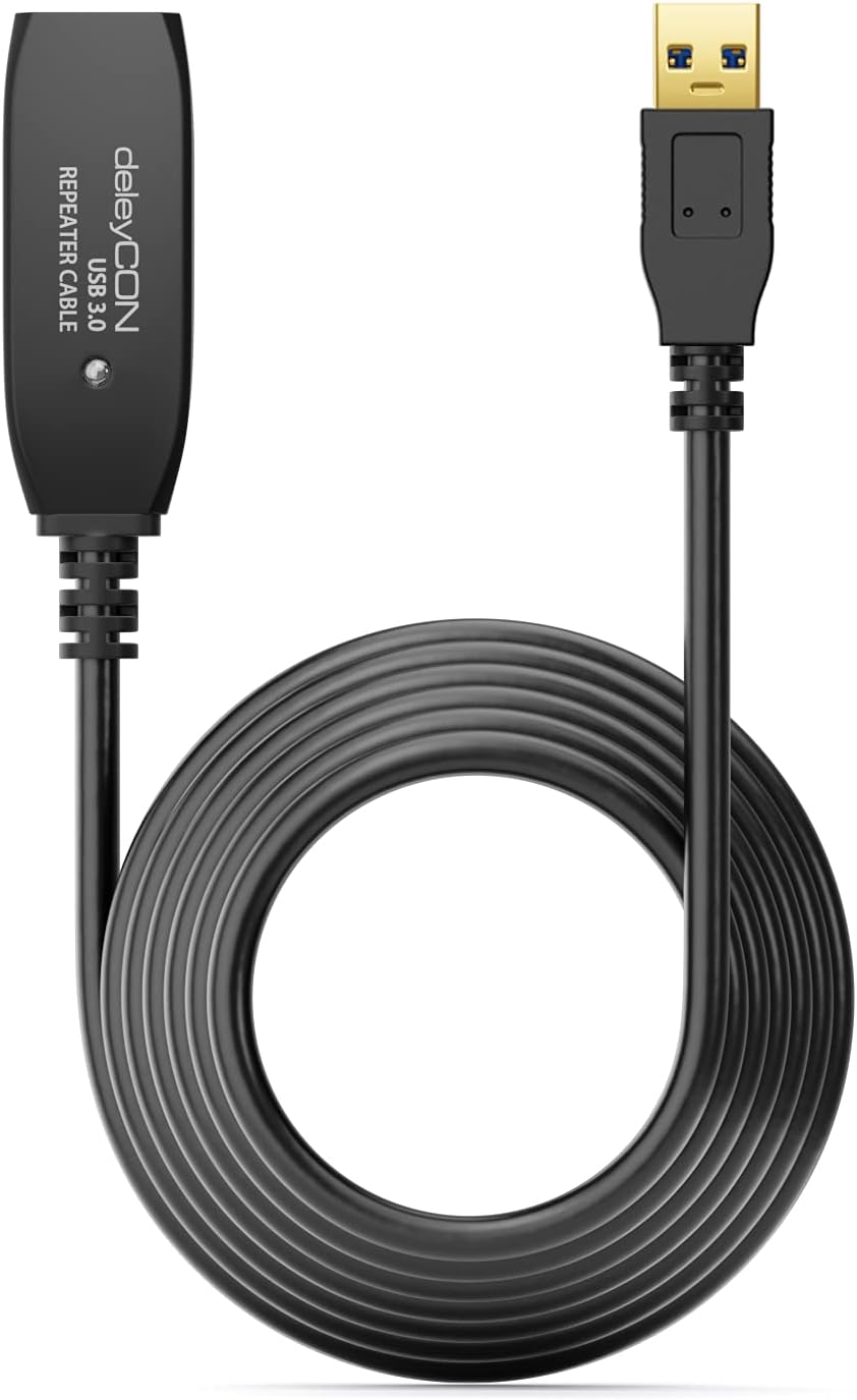 - deleyCON Aktives USB3.0 Kabel + Netzteil für die Stromversorgung // Aktive USB Verlängerung Verlängerungskabel mit max. 5 GBit/s (USB 3.0 Superspeed)