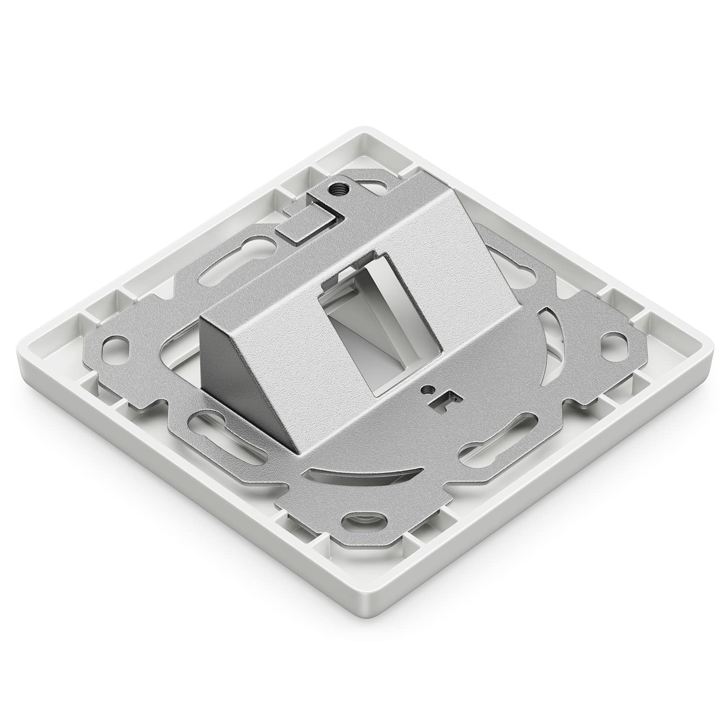 - Grösse der Netzwerkdose: Zentralplatte: 50 mm x 50 mm // Montage-Lochabstand: 60 mm // Abdeckrahmen: 80 mm x 80 mm