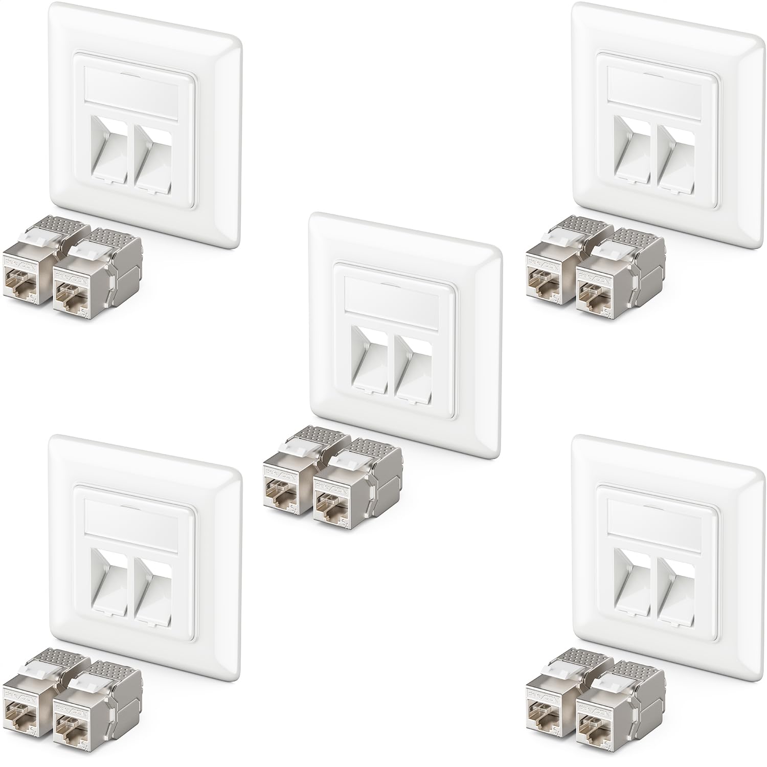 - Anzahl: 5x Netzwerkdose + 10x CAT 6a Keystone // Farbe Netzwerkdose: Weiss (RAL 9003 Signalweiss) // Farbe Keystone: Silber
