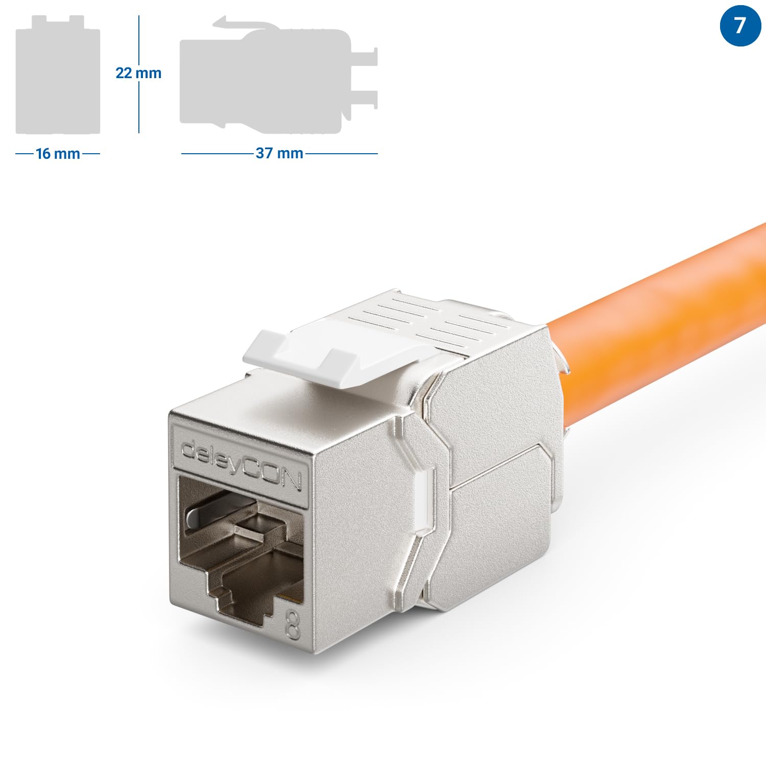 - deleyCON CAT 8 Keystone Modul // Optimal für Cat8 + Cat7 + Cat7a Verlegekabel // Übertragungsgeschwindigkeit bis zu 40 Gbit/s // Bandbreite bis zu 2000 MHz