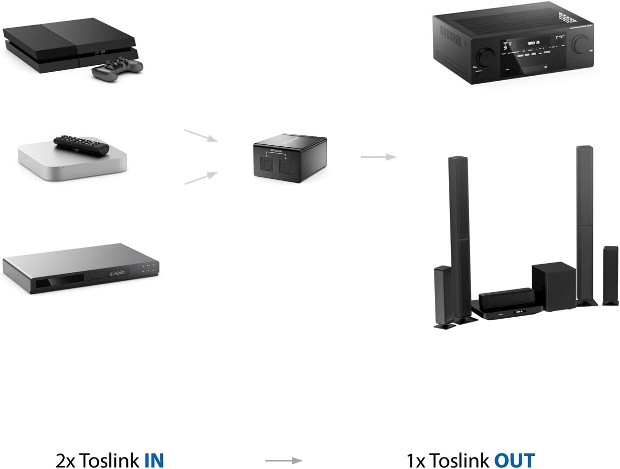 deleyCON Toslink 2x1 Switch SPDIF Audio Manueller Umschalter Verteiler Splitter (2X IN / 1x Out) Opt