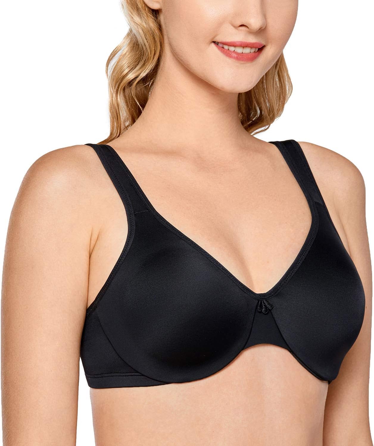 DELIMIRA Damen Minimizer BH mit Bügel Grosse Brüste Starker Halt Seamless Tshirt BHS Soft 70C Schwar