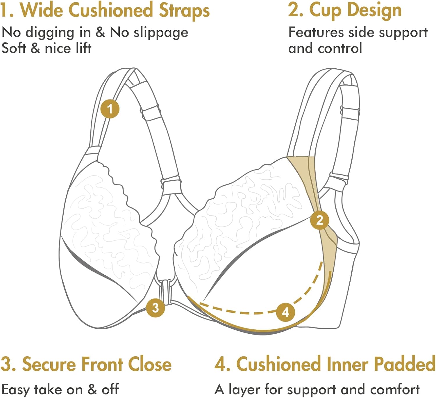 - Gepolsterte Bügel sorgen für ausreichend Unterstützung, freundlich zu Frauen mit grossen Brüsten.