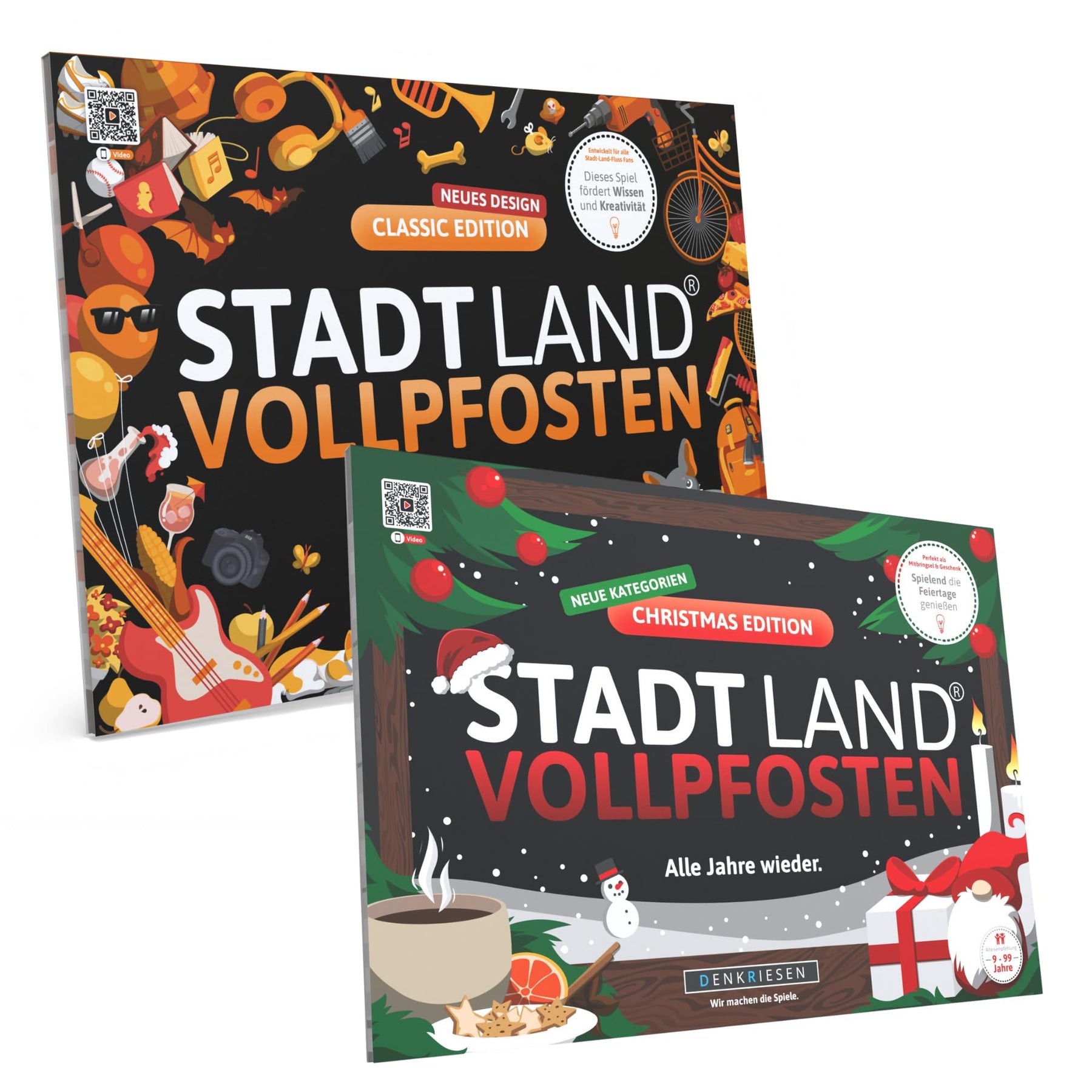 - 🎉 ZWEI BELIEBTE EDITIONEN IN EINEM BUNDLE – Stadt Land VOLLPFOSTEN Classic & Christmas Edition vereint den Spieleklassiker und die festliche Weihnachtsvariante für doppelten Spielspass – ideal für Familie, Freunde & Partys!