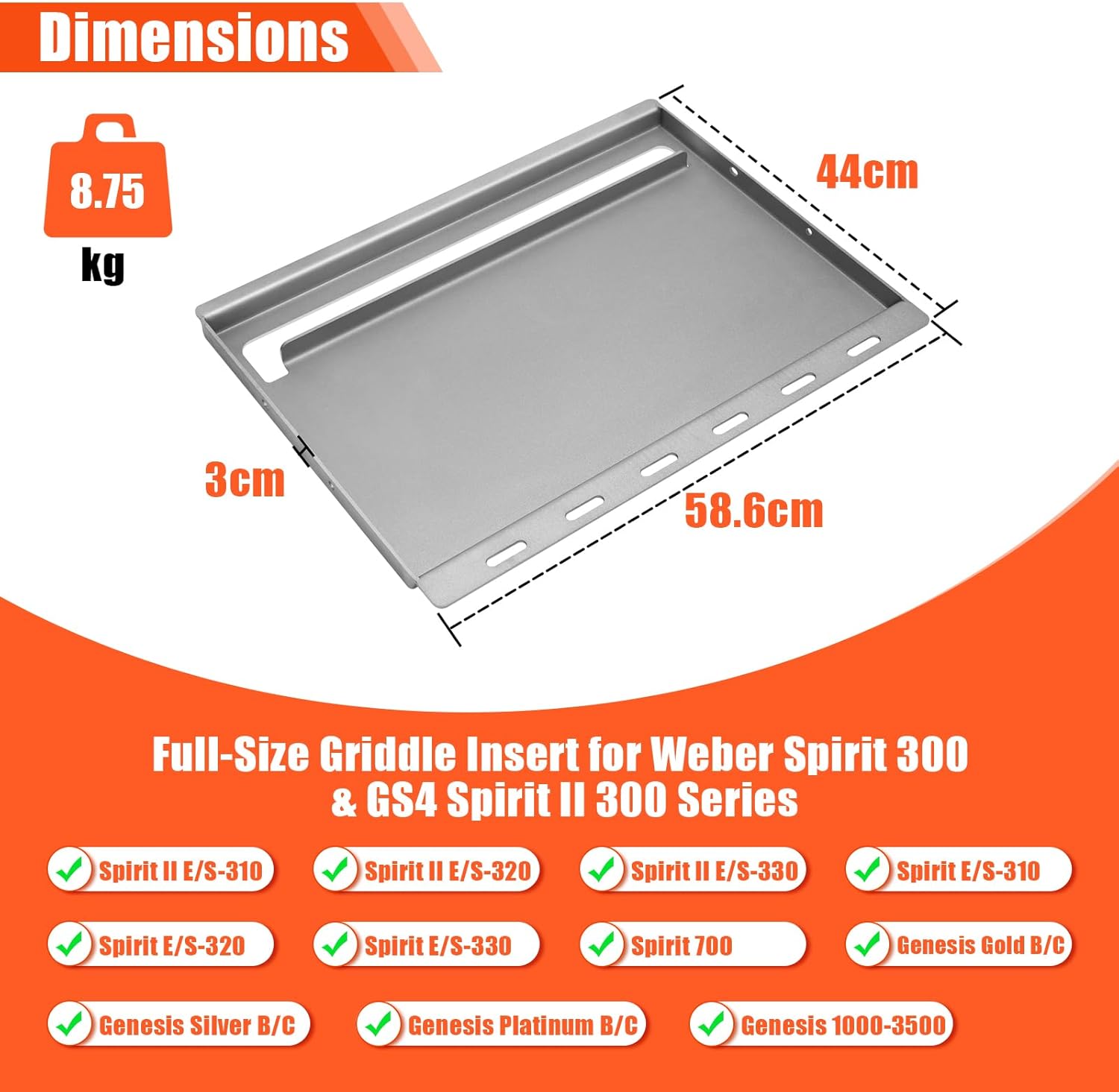 - 【Kompatibilität】Universal Grillplatte für Weber Spirit 300 Serie, Ersatz für Weber Spirit I&II Serie E310 E320 E330, S310 S320 S330.