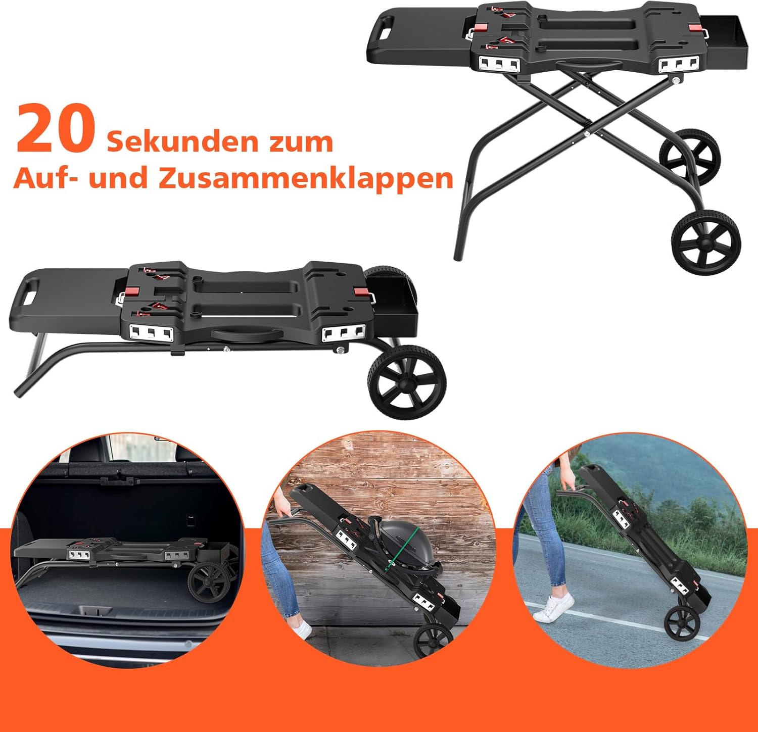 - 【Professioneller Grillwagen】Das einzigartige 'X'-Design des faltbaren Meisterwagens bietet unglaubliche Stabilität auf den meisten Oberflächen mit zwei grossen, langlebigen und den Allwetterrädern, die es Ihnen ermöglichen, professionelles