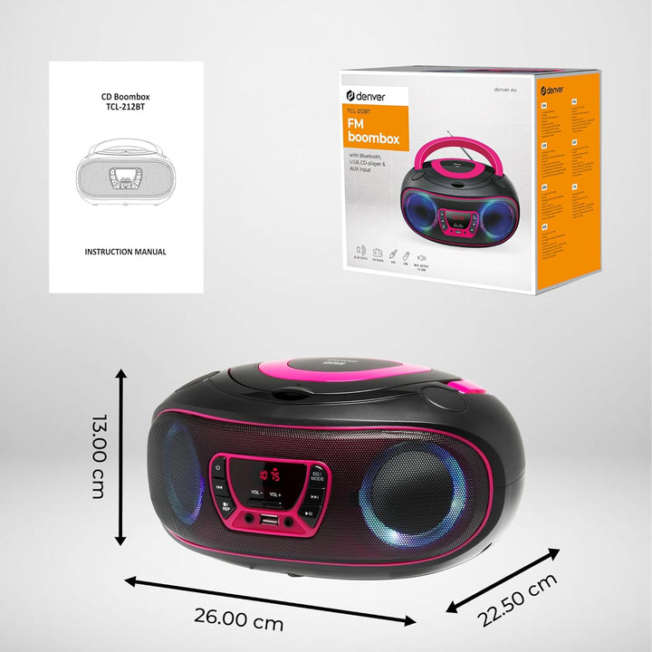 - Denver TCL-212BT CD-Radio UKW AUX, CD, USB, Bluetooth Stimmungslicht Pink