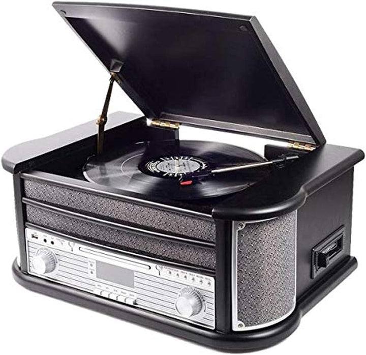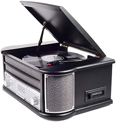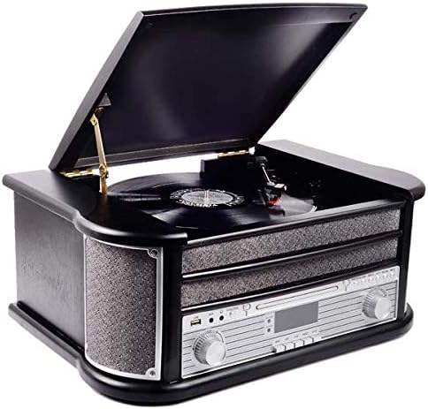 Denver MRD-51 DAB+, FM/AM Radio mit CD-, Kasetten- und Plattenspieler, Holzoptik, Schwarz,