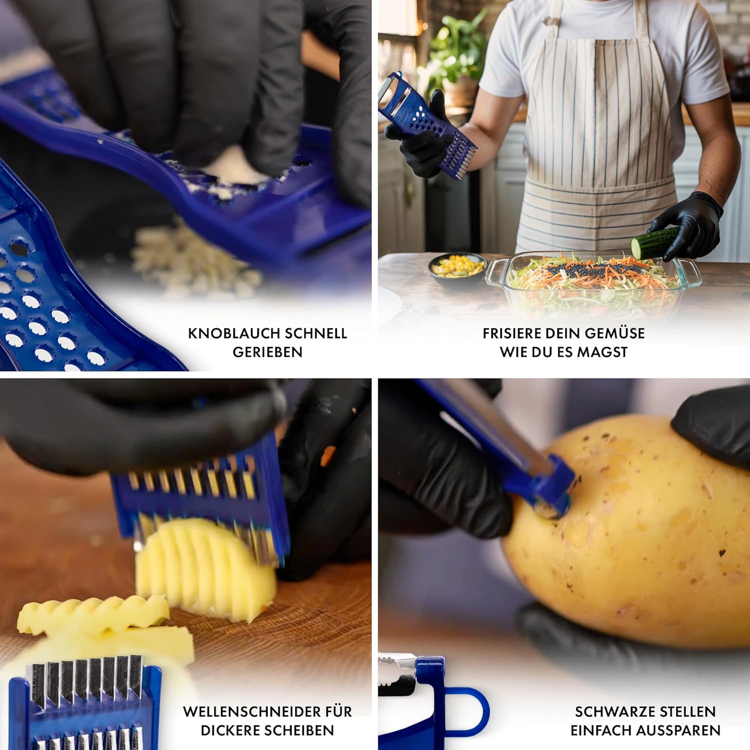 - VIELSEITIGES DESIGN: Multifunktionales Küchengerät zum Schälen, Schneiden und kreativen Gestalten von Obst, Gemüse und anderen Lebensmitteln