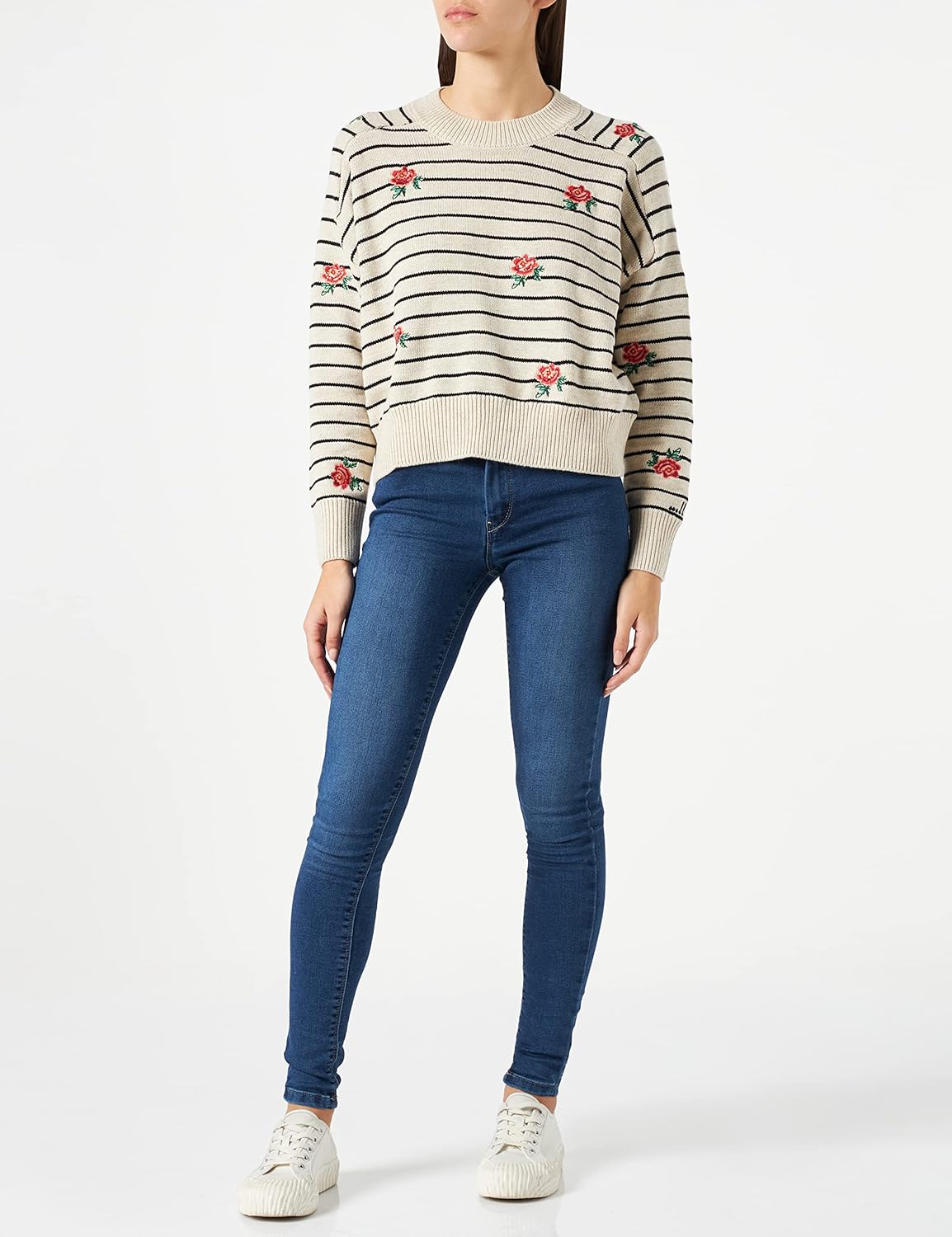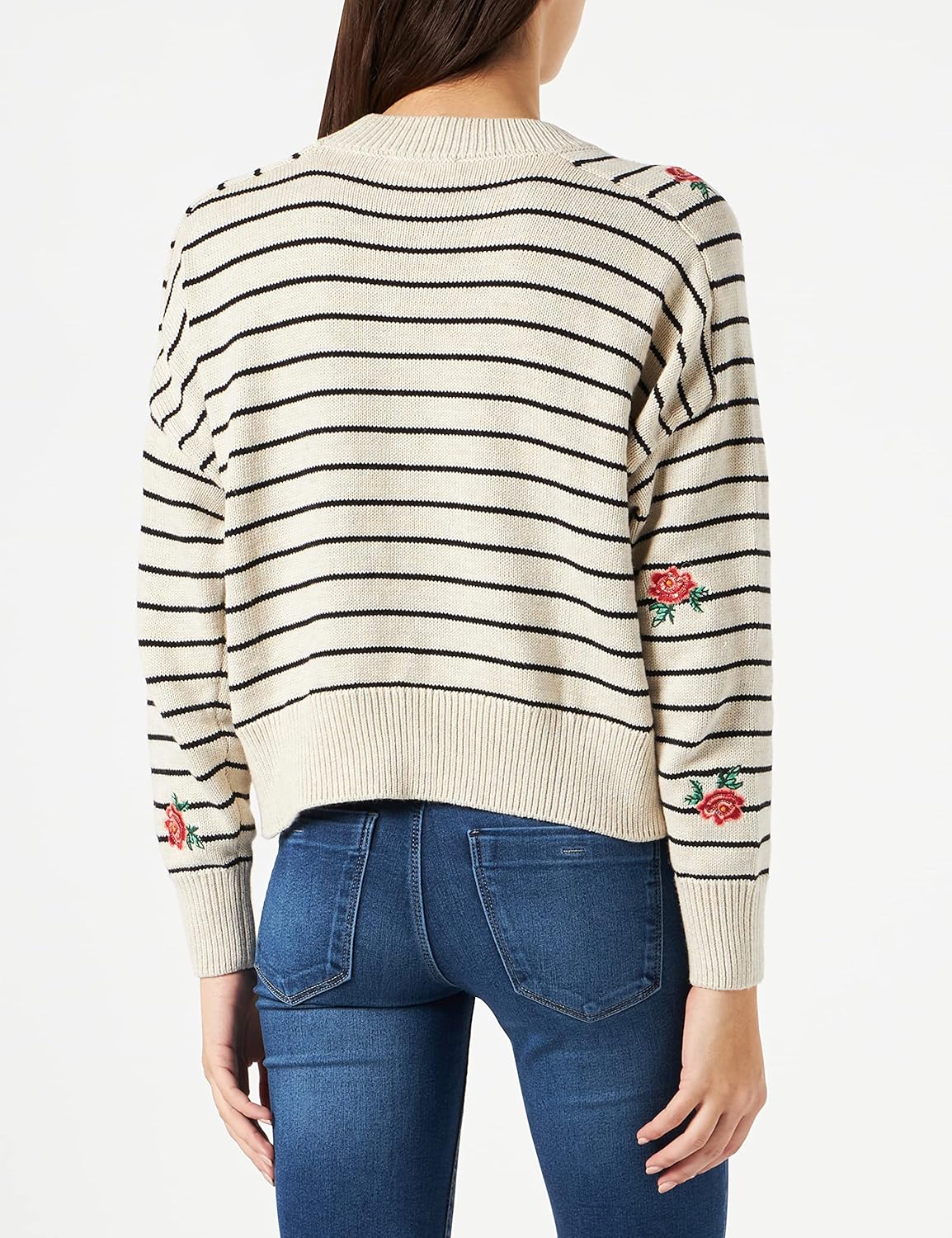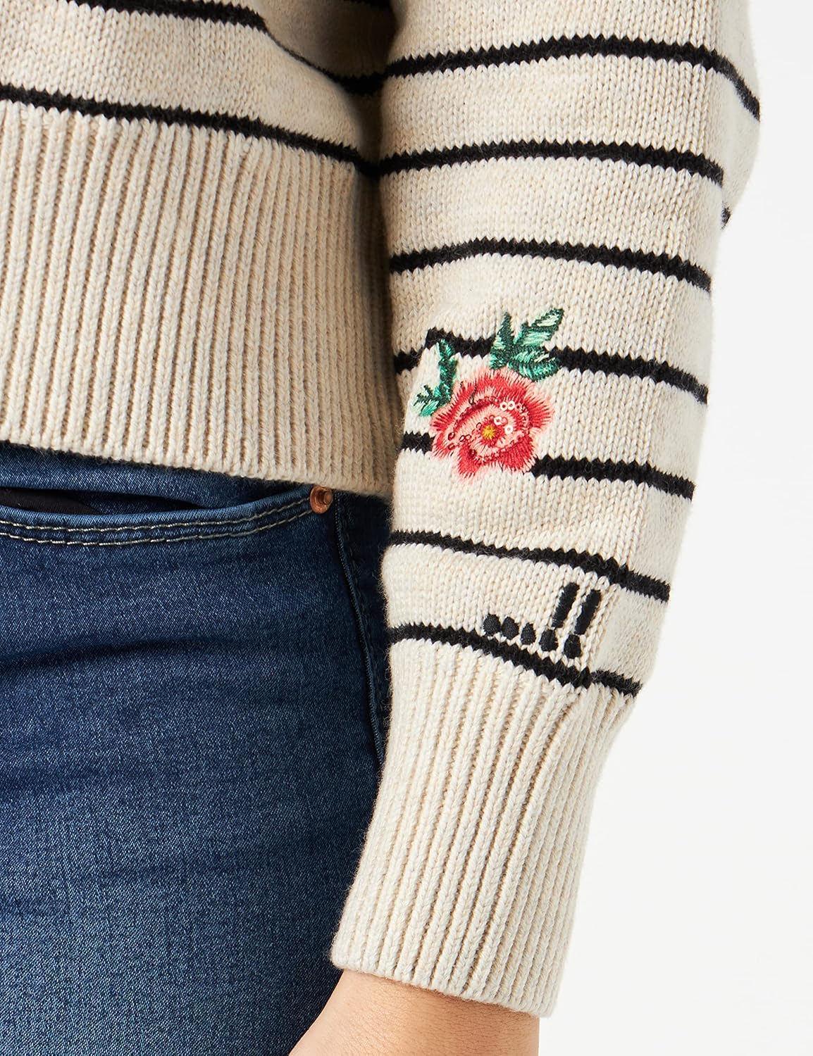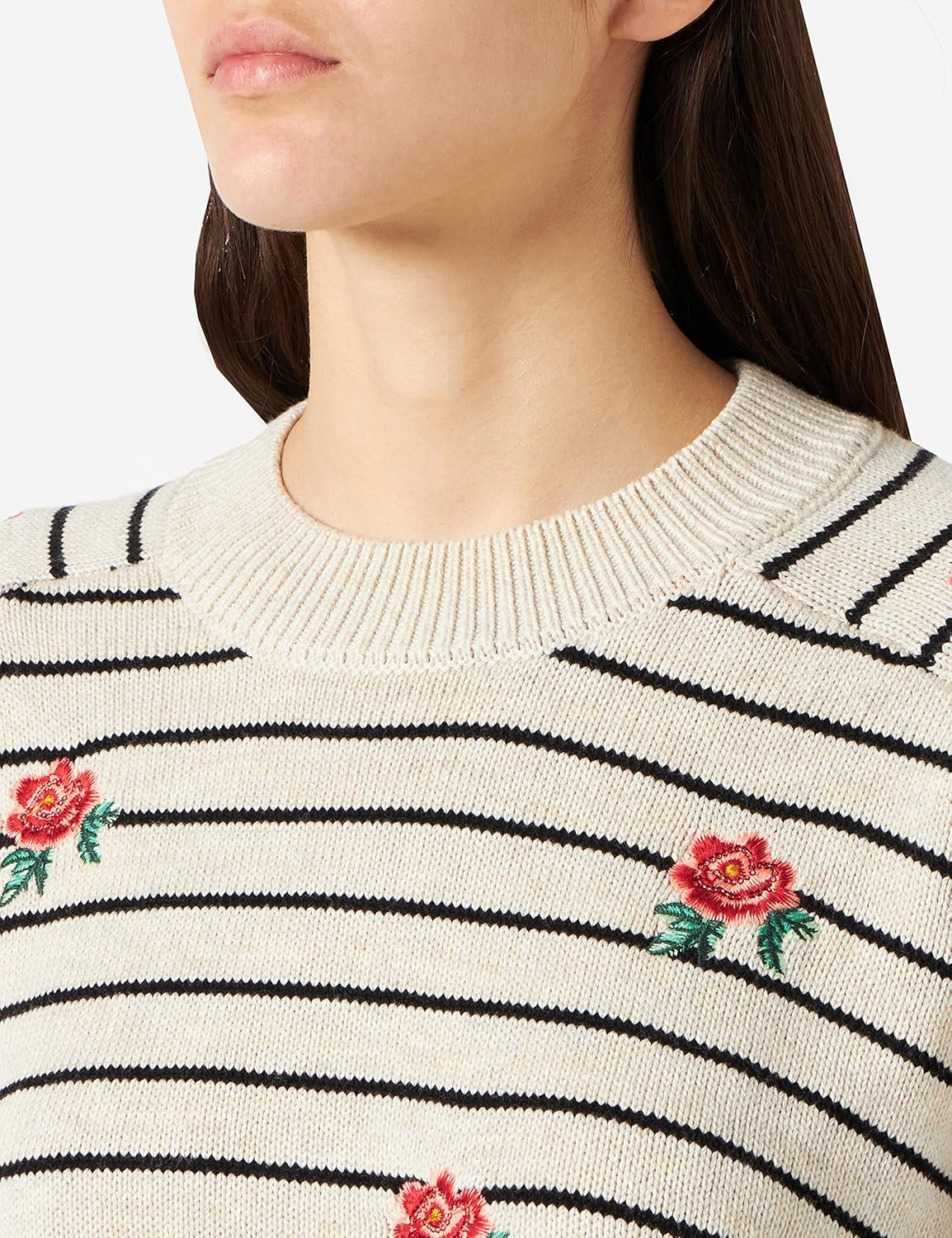 PRODUKTBESCHREIBUNGEN Aufgestickte Blumen und weisse Marinestreifen auf diesem blauen Pullover mit weiter Silhouette. Elastisch gerippter Rundhalsausschnitt, Ärmelsäume und Saum. Aus Baumwolle und etwas Wolle für mehr Tragekomfort.