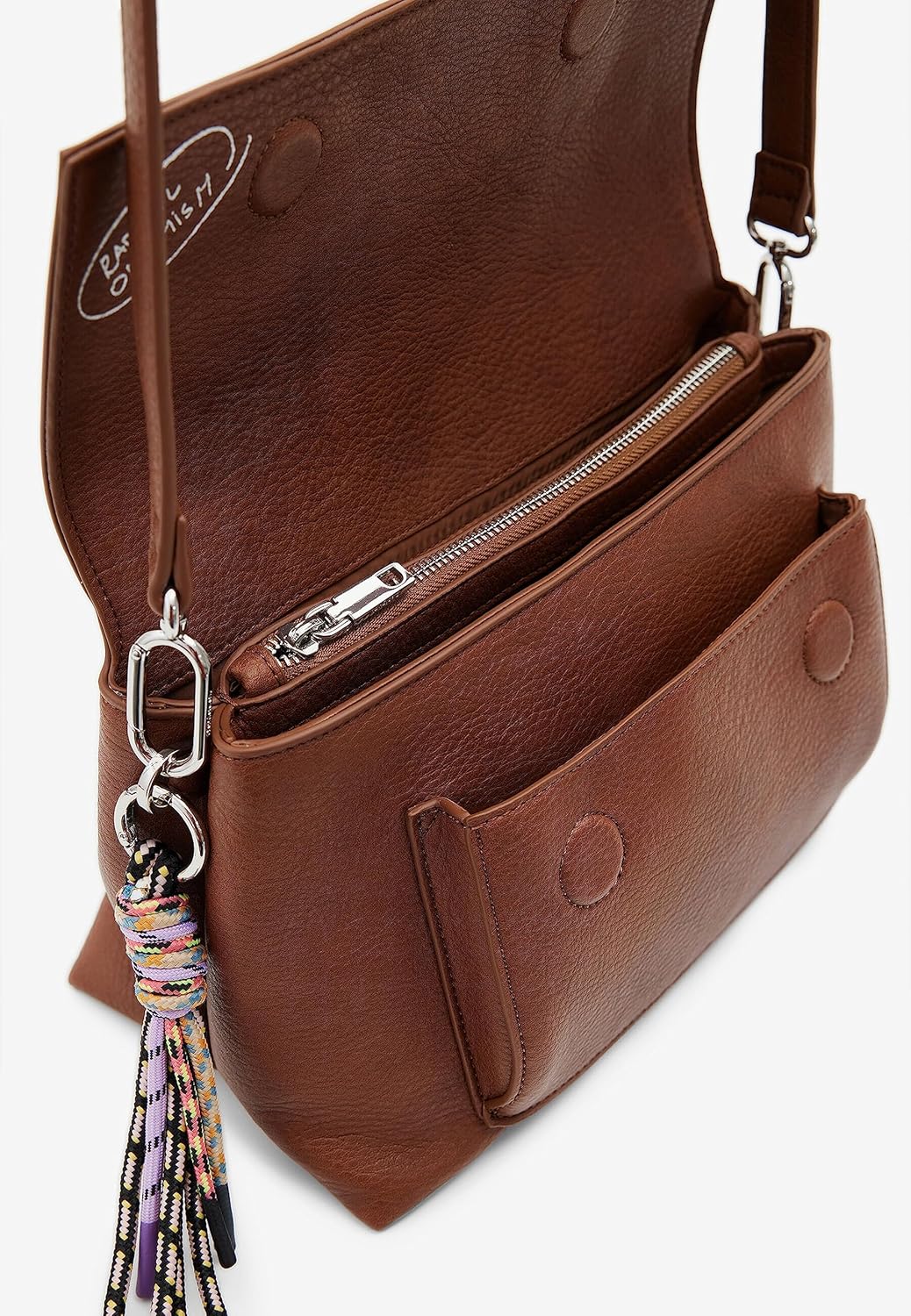 PRODUKTBESCHREIBUNGEN Mittelgrosse Umhängetasche aus einfarbigem Stoff in Lederoptik, mit geprägtem Logo vorne, mehreren Griffen und Taschen. Einfarbig, mehrere Aussen- und Innentaschen, Magnetverschluss und Reissverschluss, zwei Fächer, drei abnehmbare Griffe, kurzer Henkel in Leder-Optik mit Nieten, verstellbarer kurzer Henkel zum Tragen der Schultertasche, langer verstellbarer Schultergurt, 25,5 x 12,6 x 15,8 cm