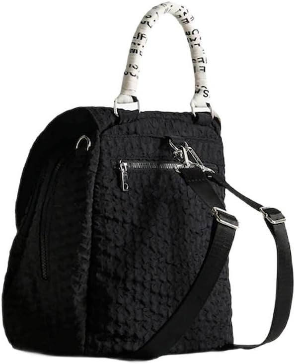 PRODUKTBESCHREIBUNGEN Mittelgrosser, vielseitiger und leichter Rucksack, den man auch als Tasche oder Umhängetasche tragen kann. Mit kleiner Umhängetasche im Inneren, die man auch als Neccessaire verwenden kann. Aus schwarzem Strukturstoff mit Faltenoptik.