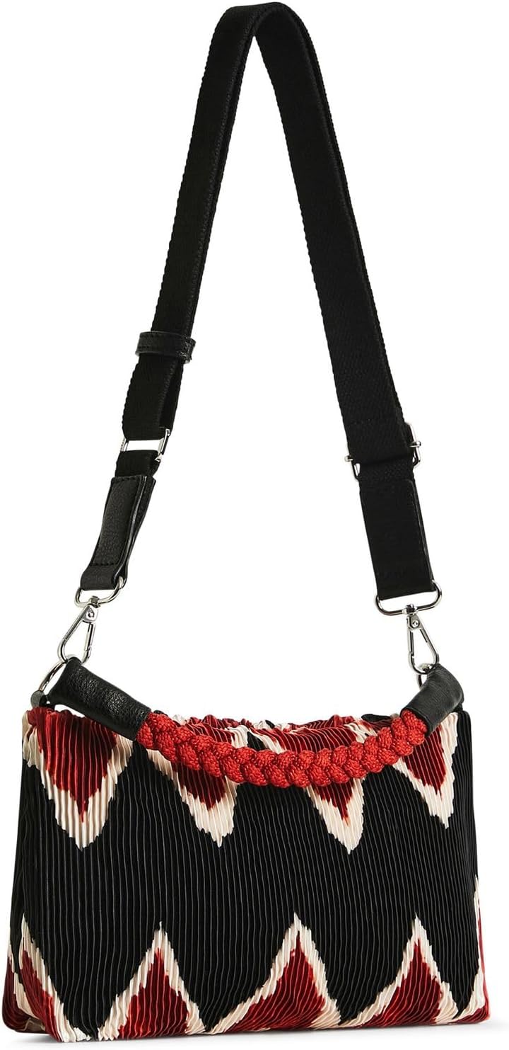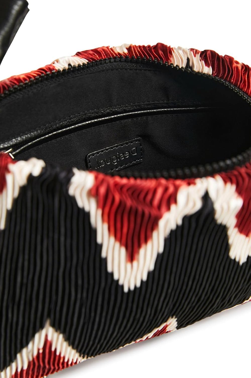 PRODUKTBESCHREIBUNGEN Super leicht wie ein Halstuch aus Plissee-Stoff mit gerafften Henkeln, Geometrie-Muster in Braun, Beige & Schwarz sowie Reissverschluss zum Verschliessen der Tasche und mehreren Innentaschen.