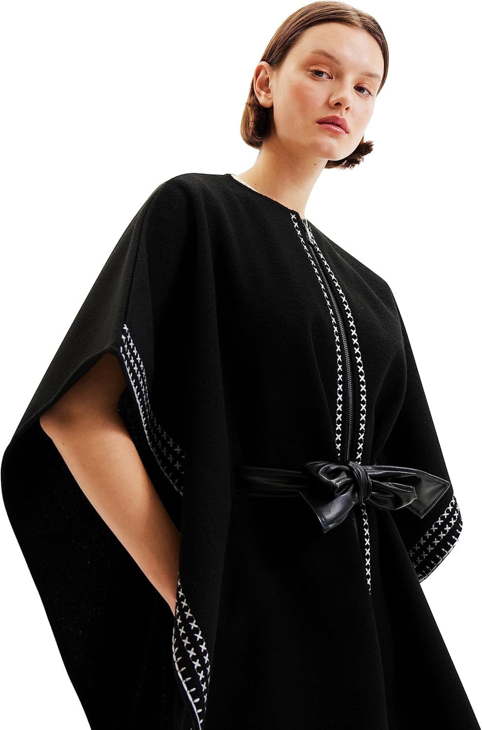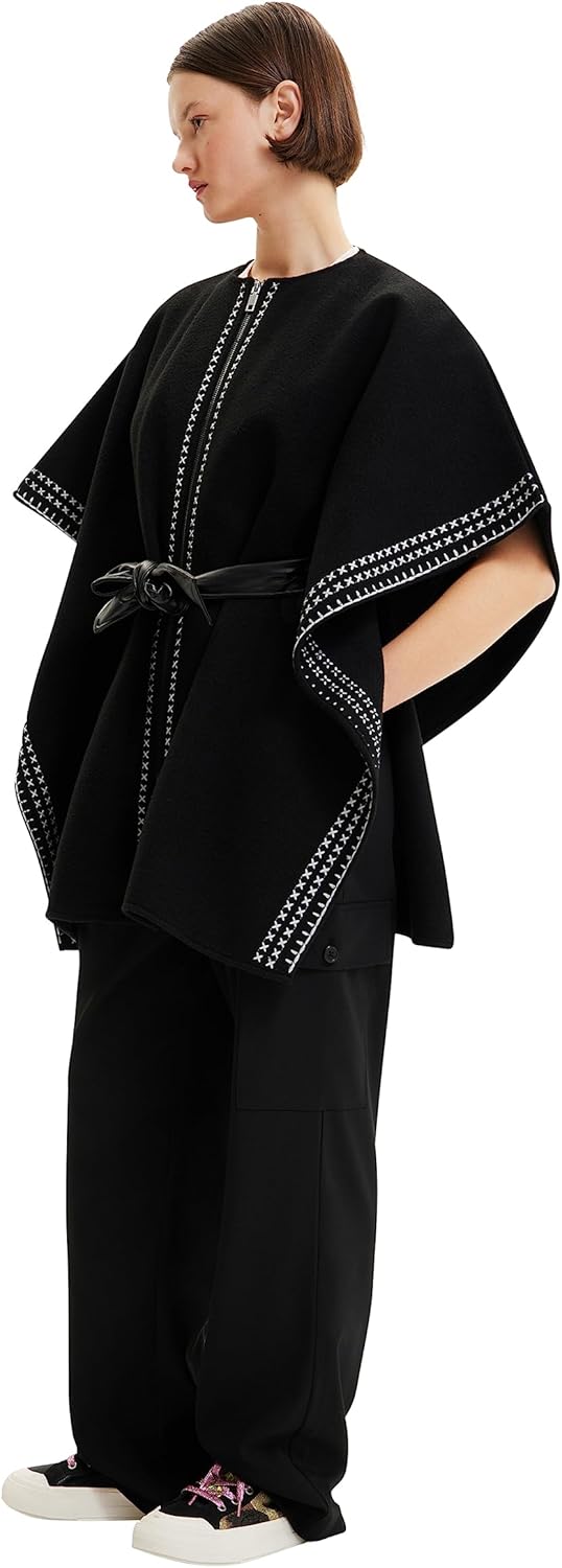 PRODUKTBESCHREIBUNGEN An den Seiten offener Oversize-Poncho mit Gürtel in Lederoptik und Reissverschluss. Tweed-artiger Stoff mit kontrastierenden Stickereien.