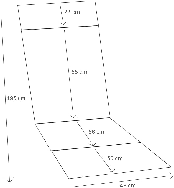 - Masse: Länge 180 cm Breite 50 cm Dicke: 5,50 cm Passend für alle Standard Deckchairs